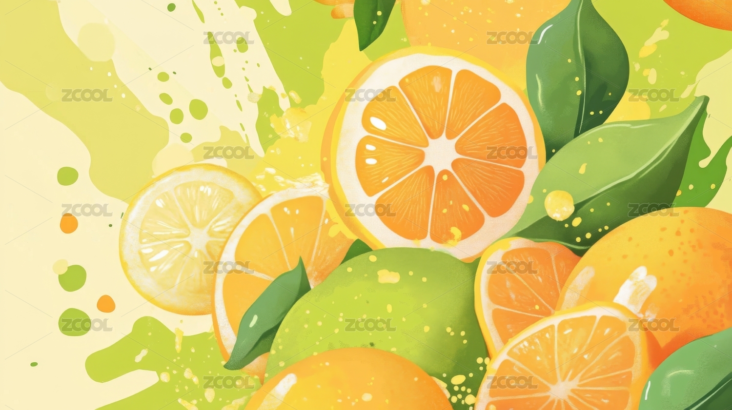 橙子切片插画背景