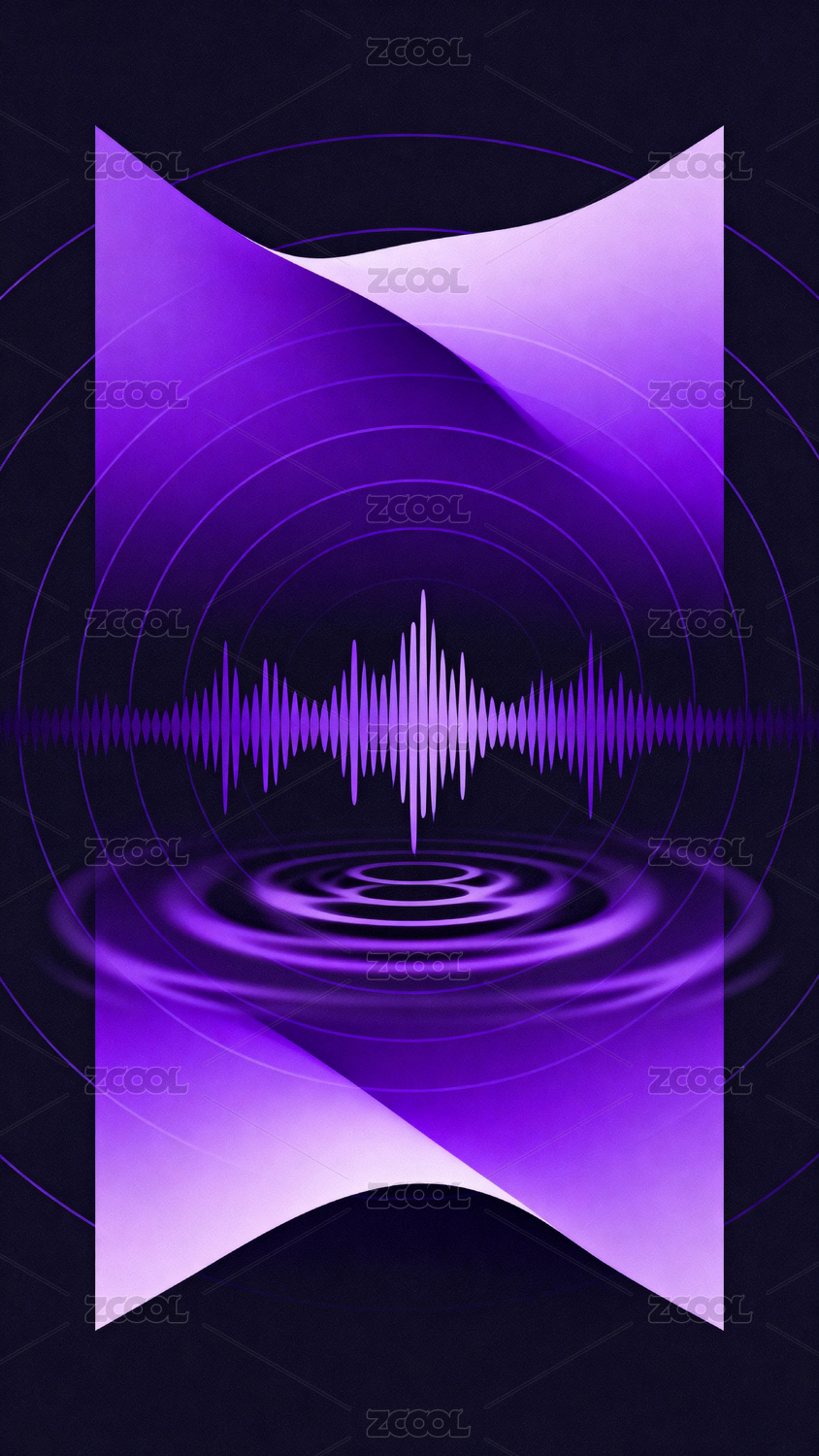 紫色波纹与声波交织的抽象艺术