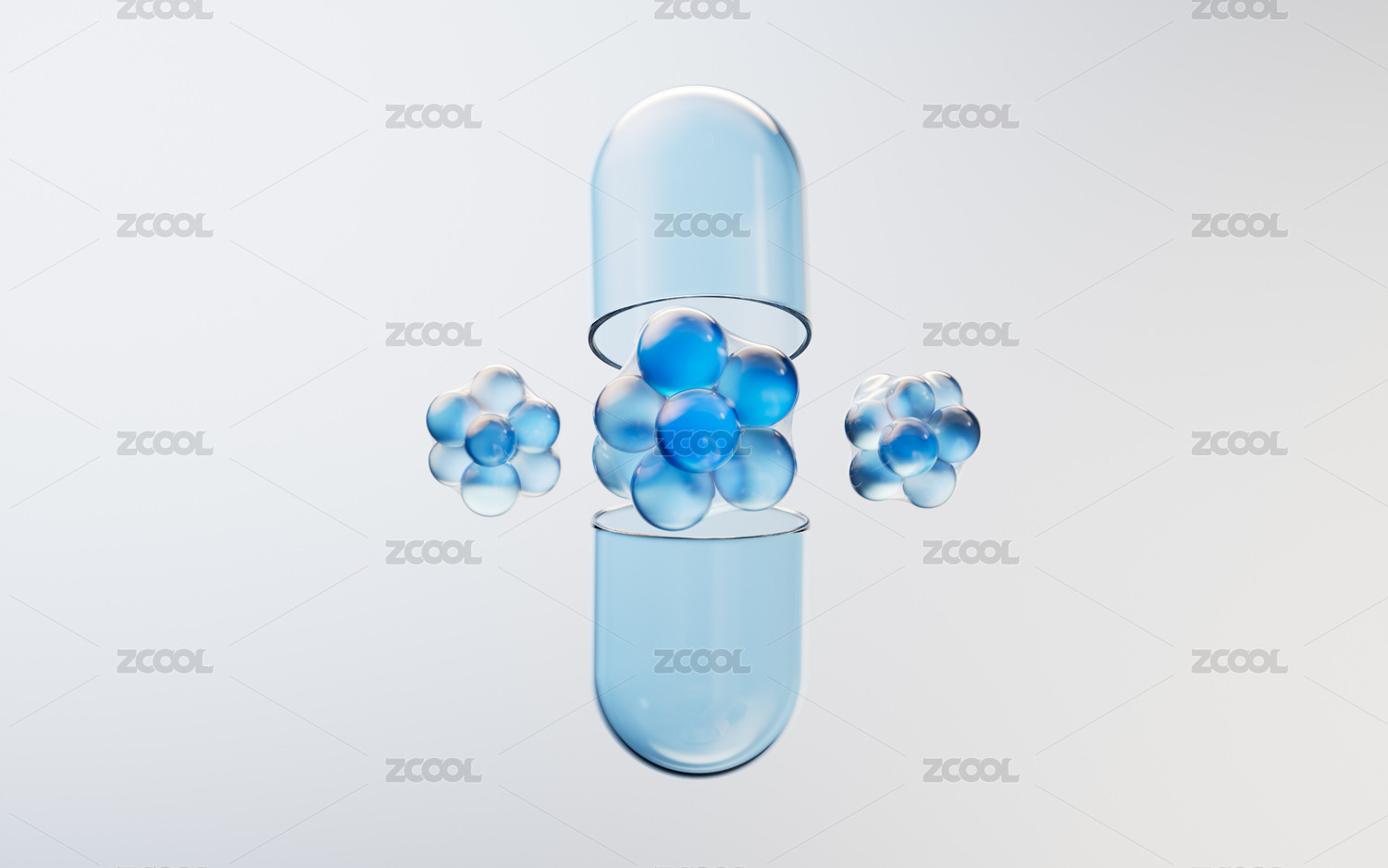 胶囊,药丸,白色,蓝色,透明,小球,漂浮,极简,现代,设计