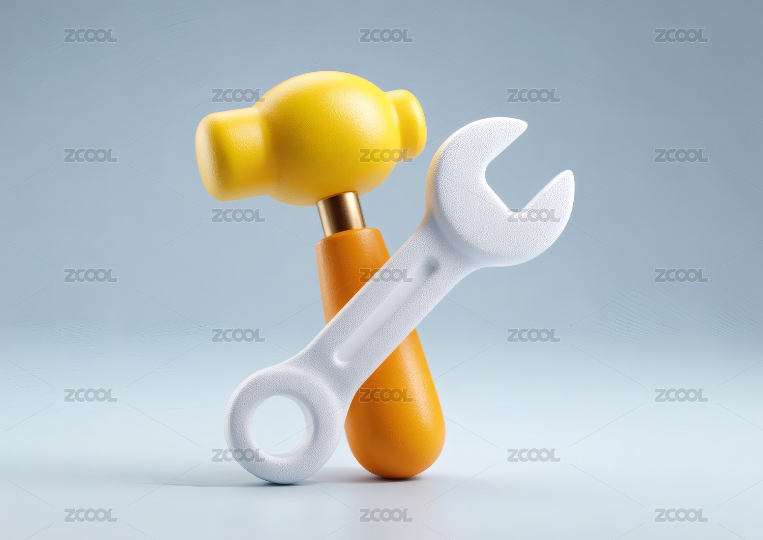 卡通锤子和扳手修理工具3D渲染