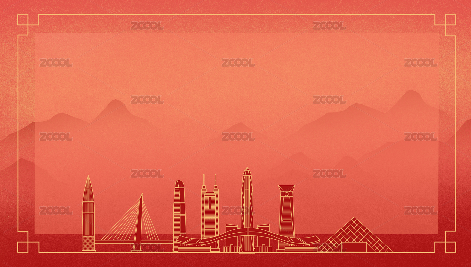 深圳红色中秋节中国风新年古典淡雅山峰窗花