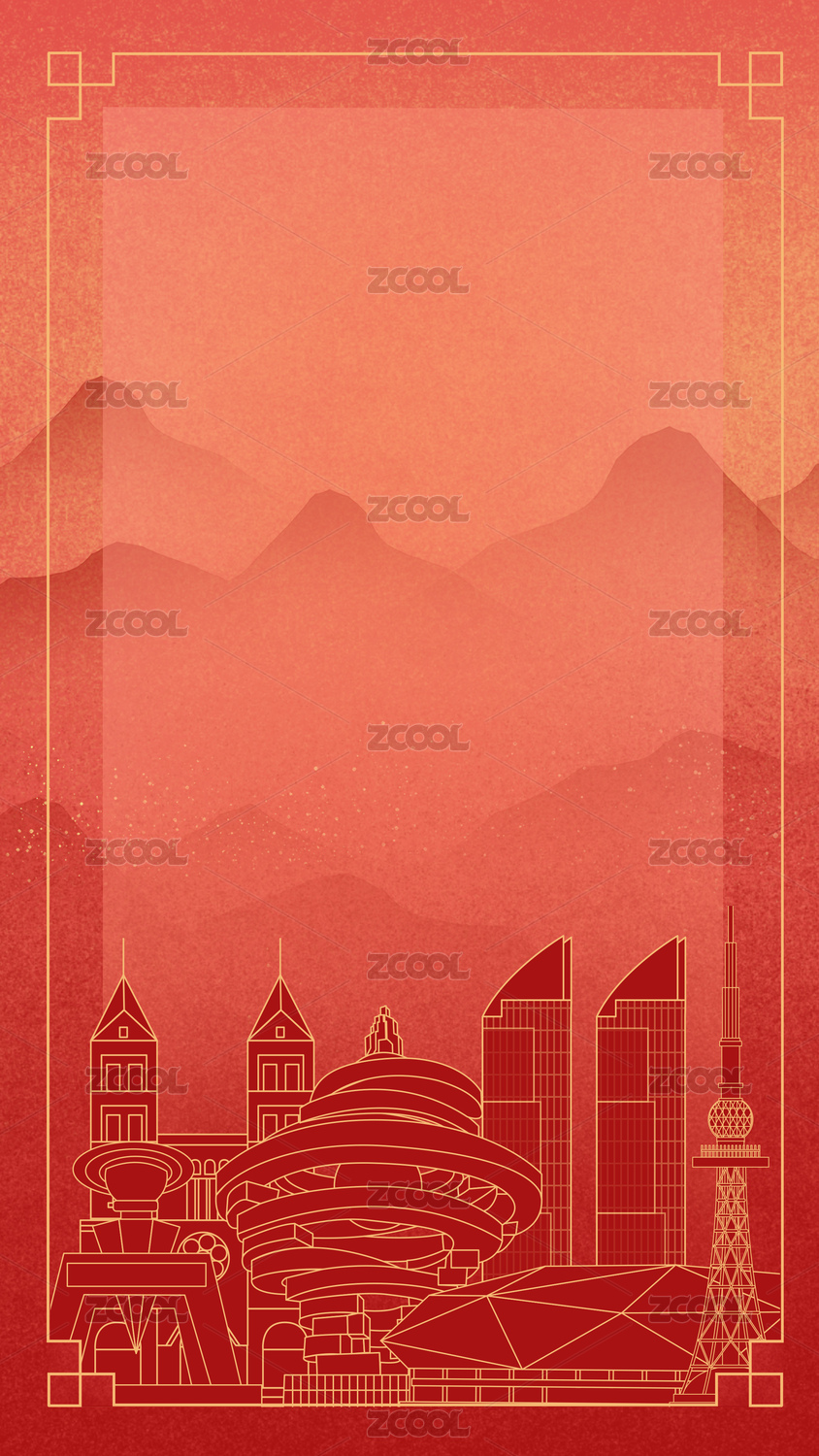 重庆红色中秋节中国风新年古典淡雅山峰窗花