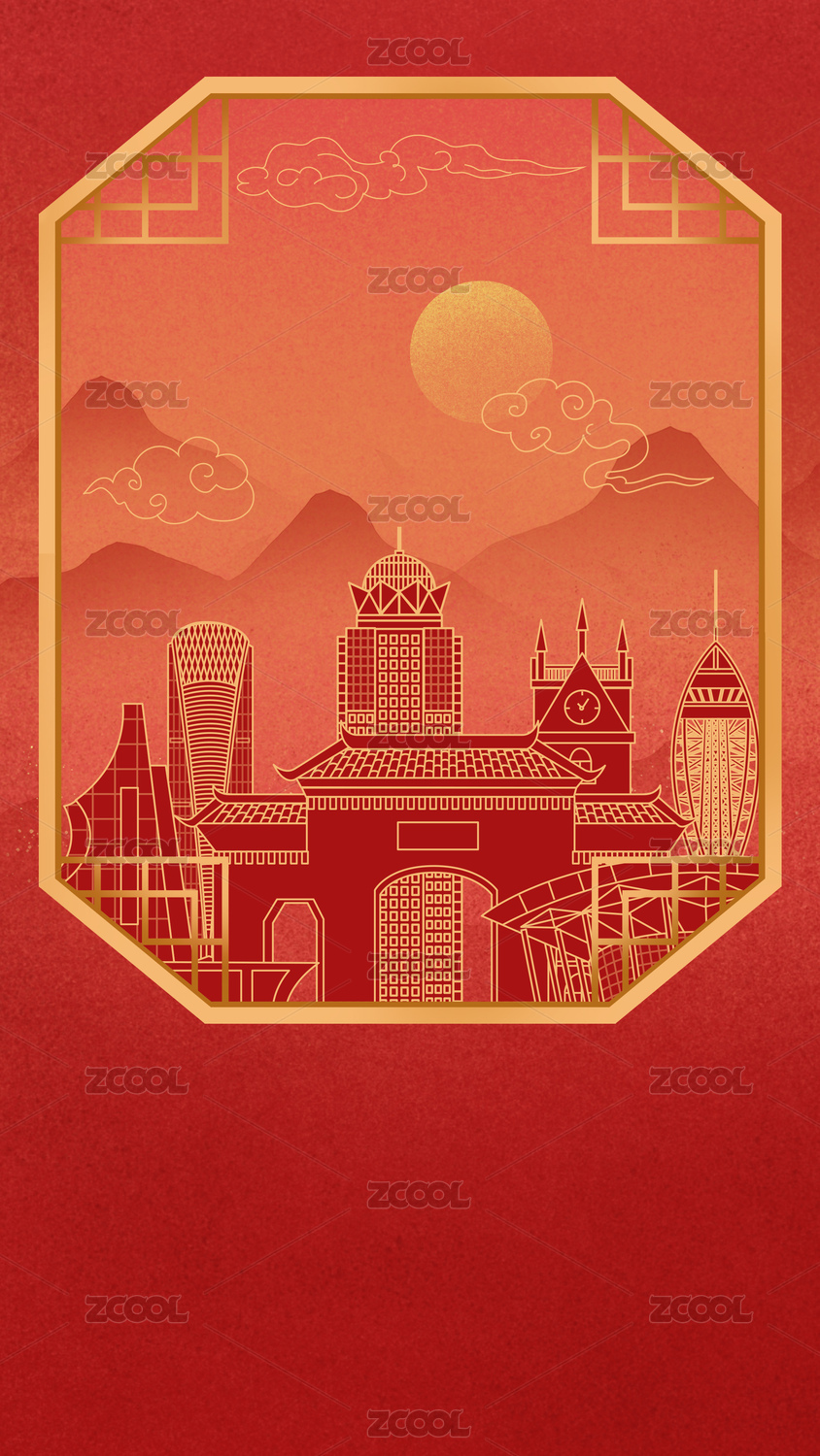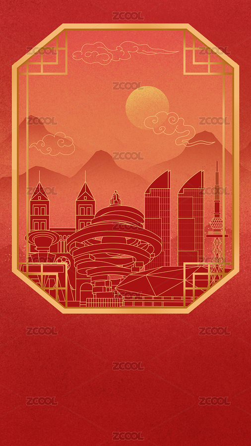 广州红色中秋节中国风新年古典淡雅山峰窗花