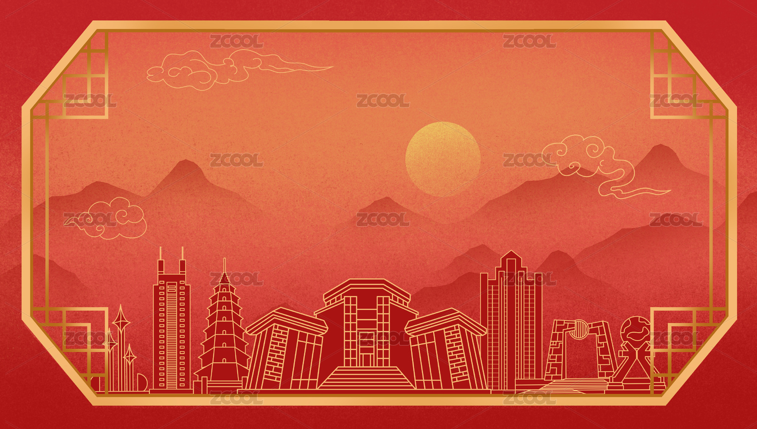 东莞红色中秋节中国风新年古典淡雅山峰窗花
