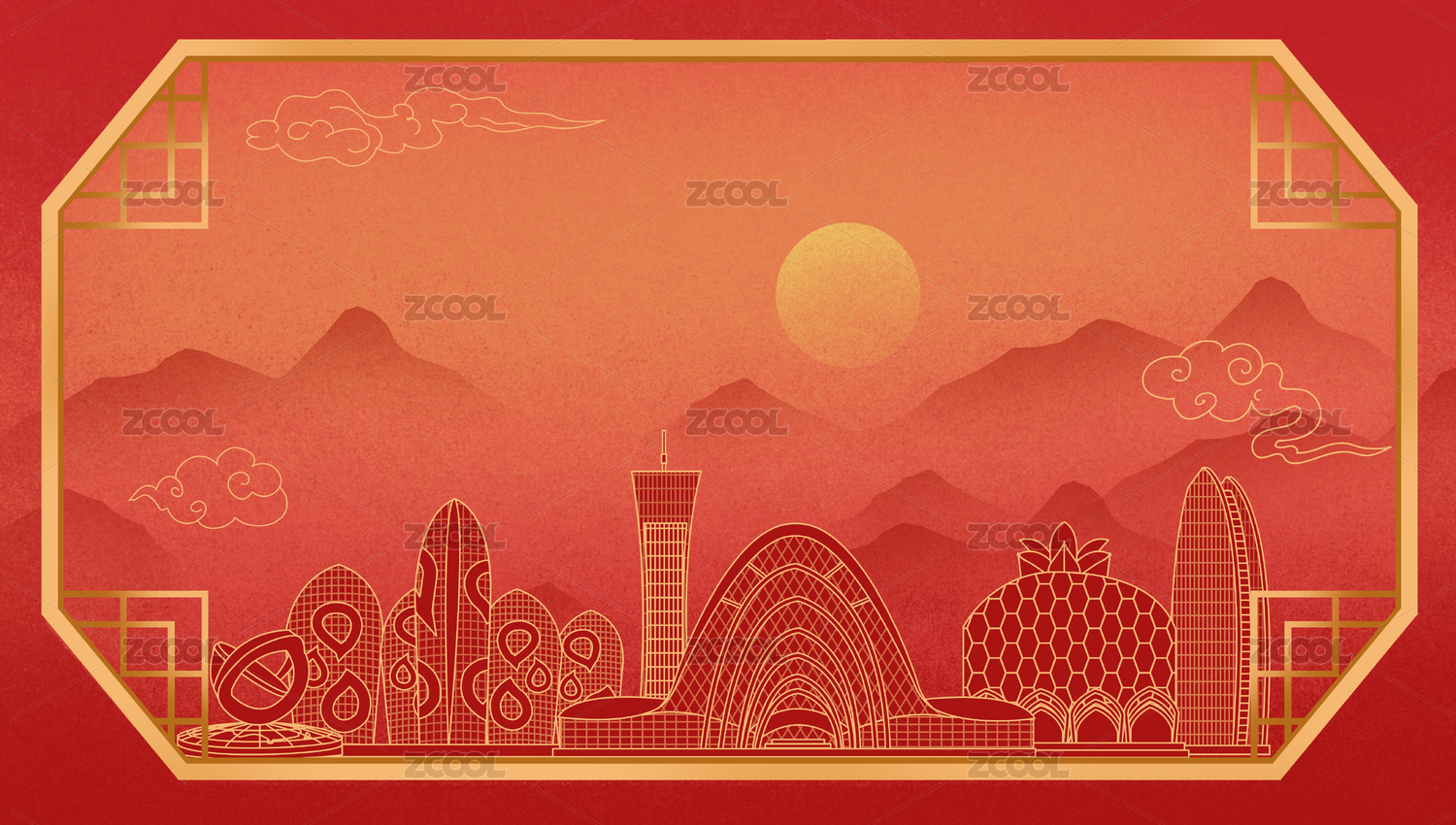 广州红色中秋节中国风新年古典淡雅山峰窗花