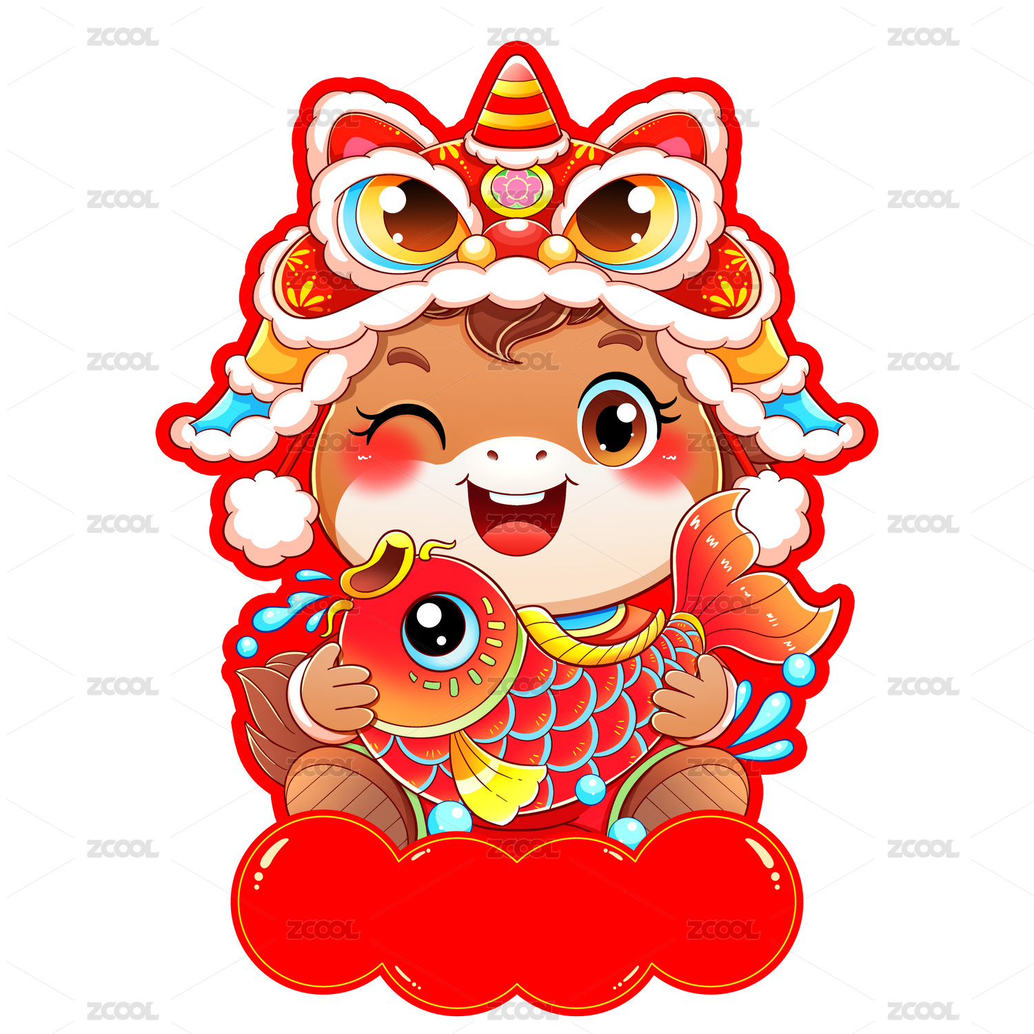 新年,春节,年画,插画,国潮,可爱,卡通,门贴,年俗,元素