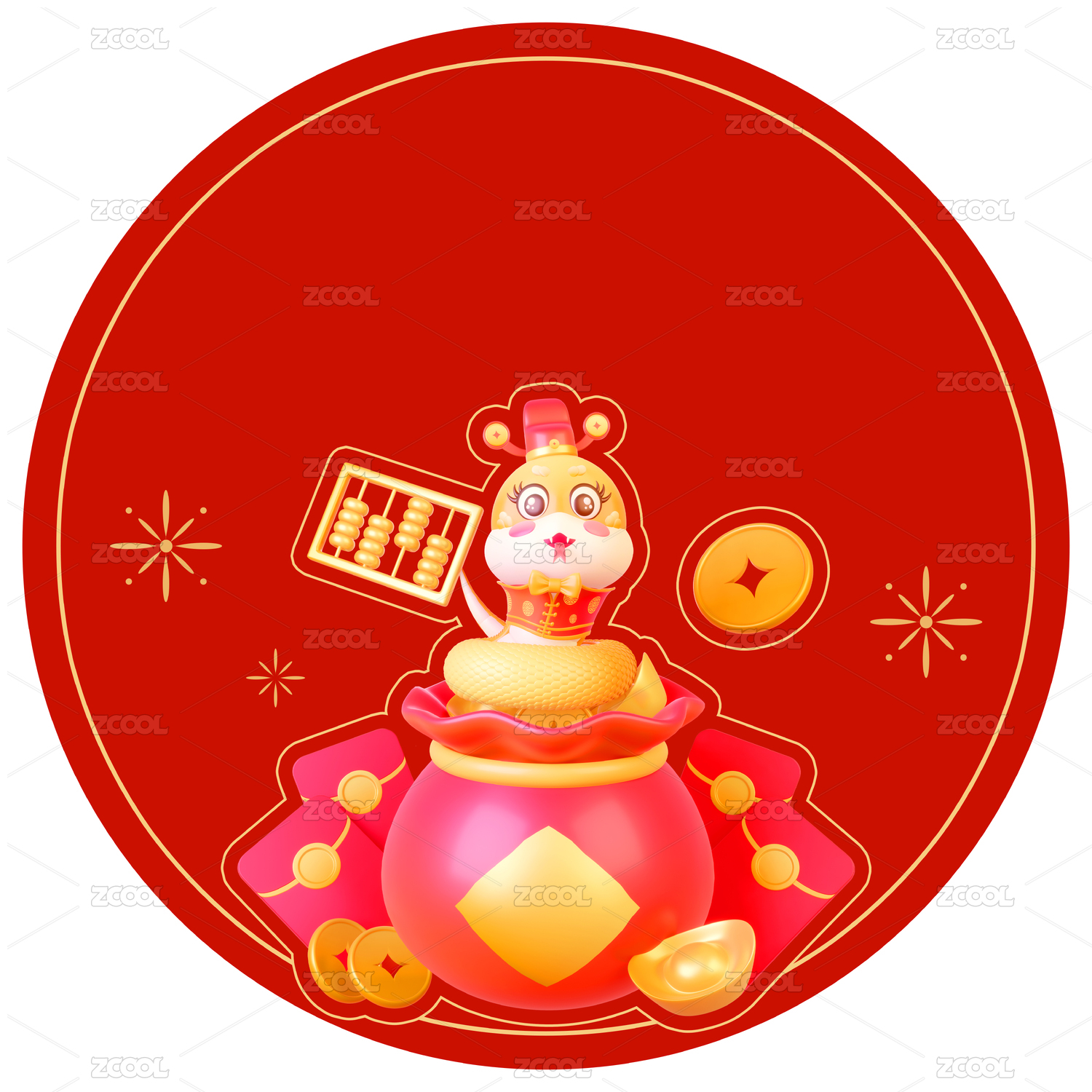 红金色金蛇蛇年新春佳节庆典3d立体插画