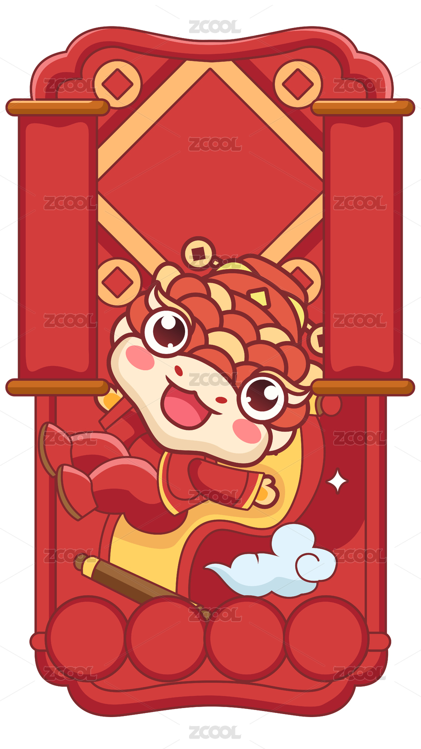 国潮风蛇年生肖插画