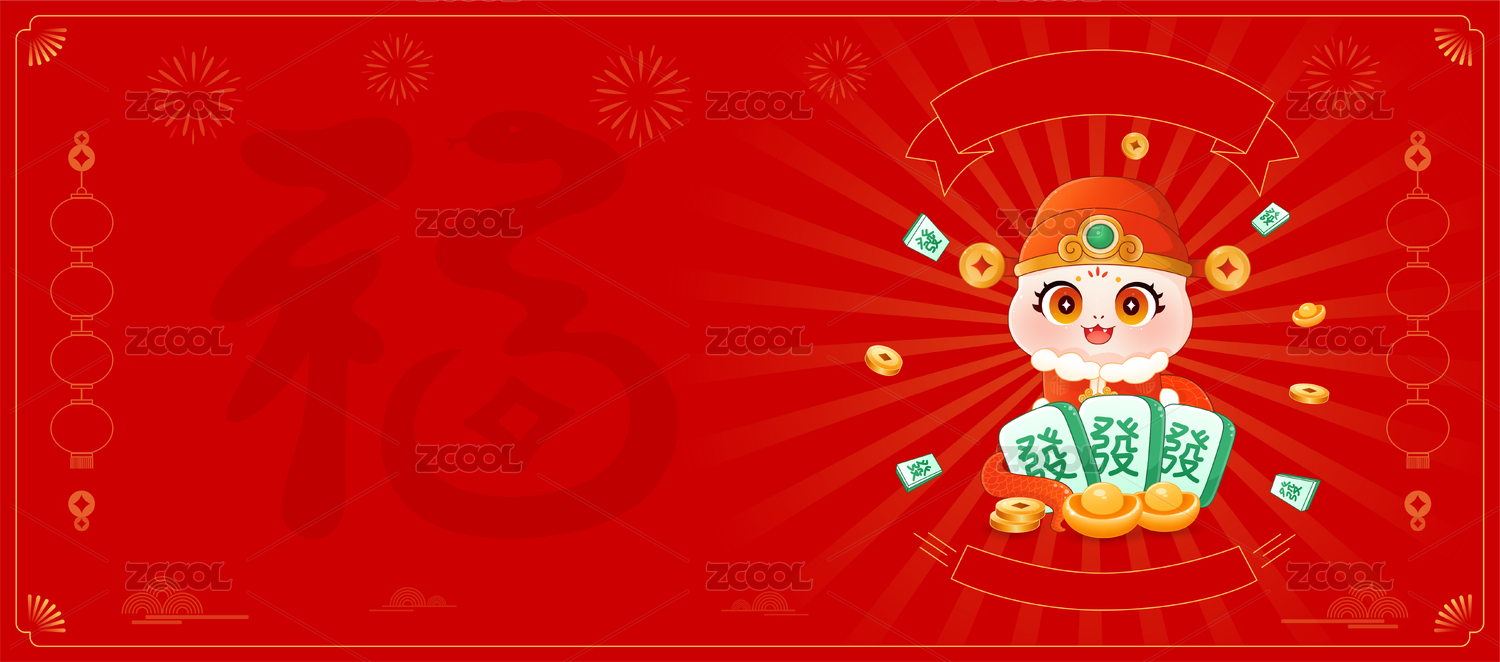 2025蛇年春节新年节日海报插画
