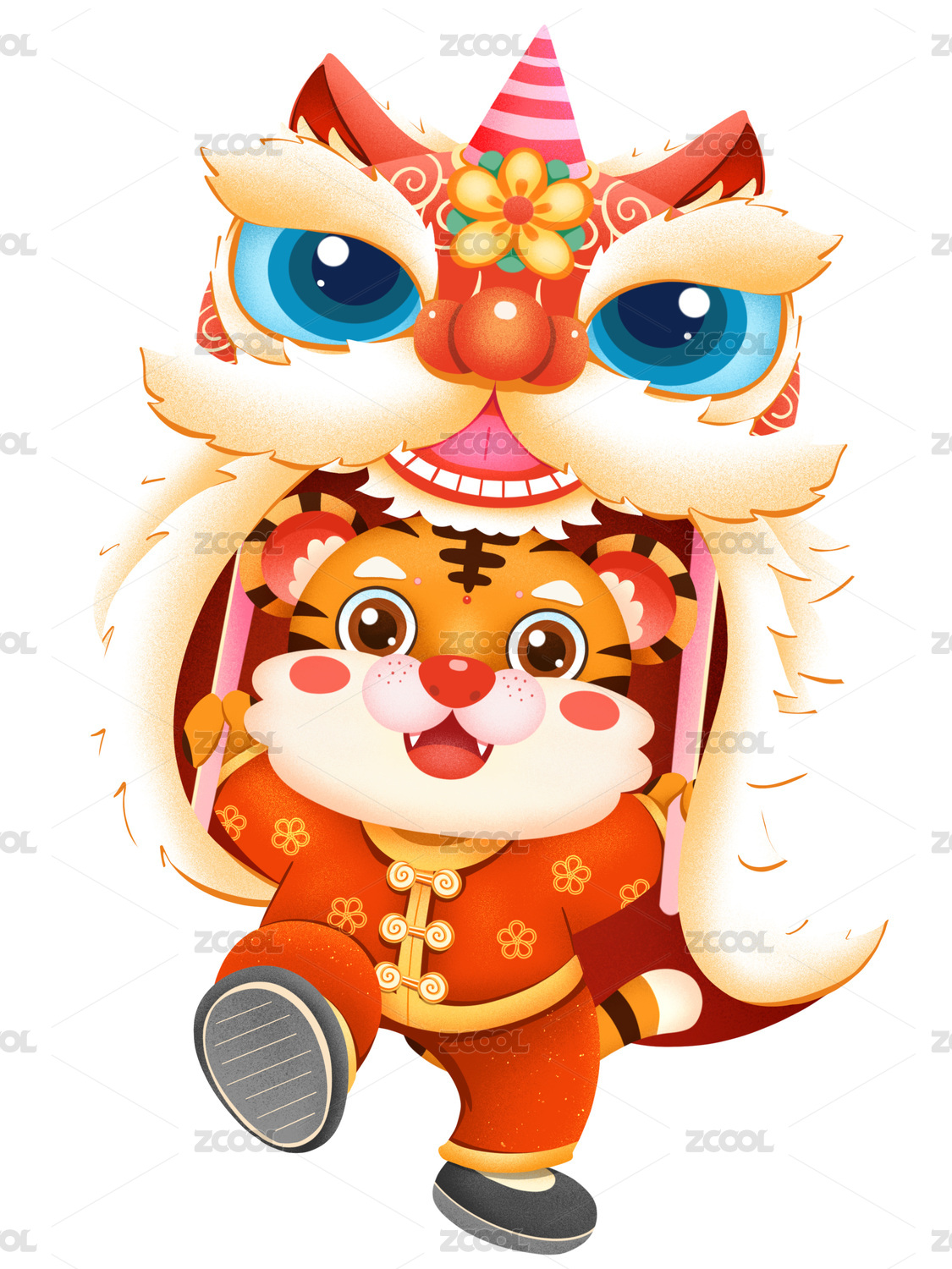 喜庆新年舞狮的老虎元素