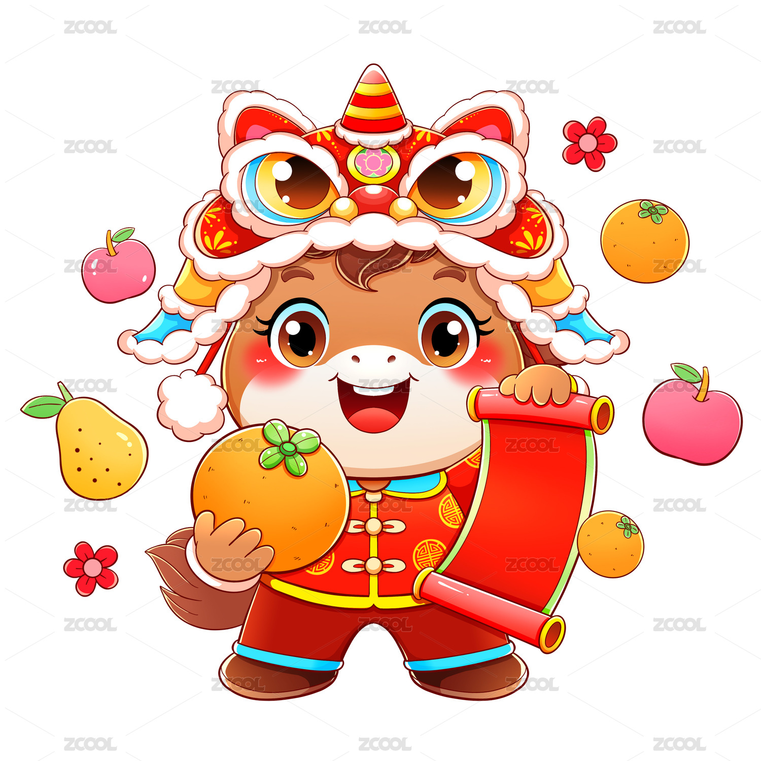马年手绘卡通马吉祥物-舞狮