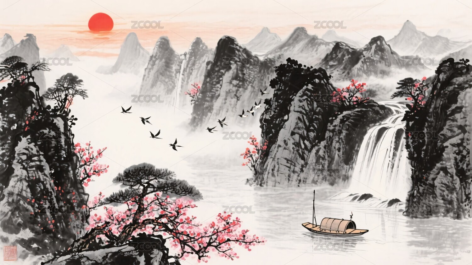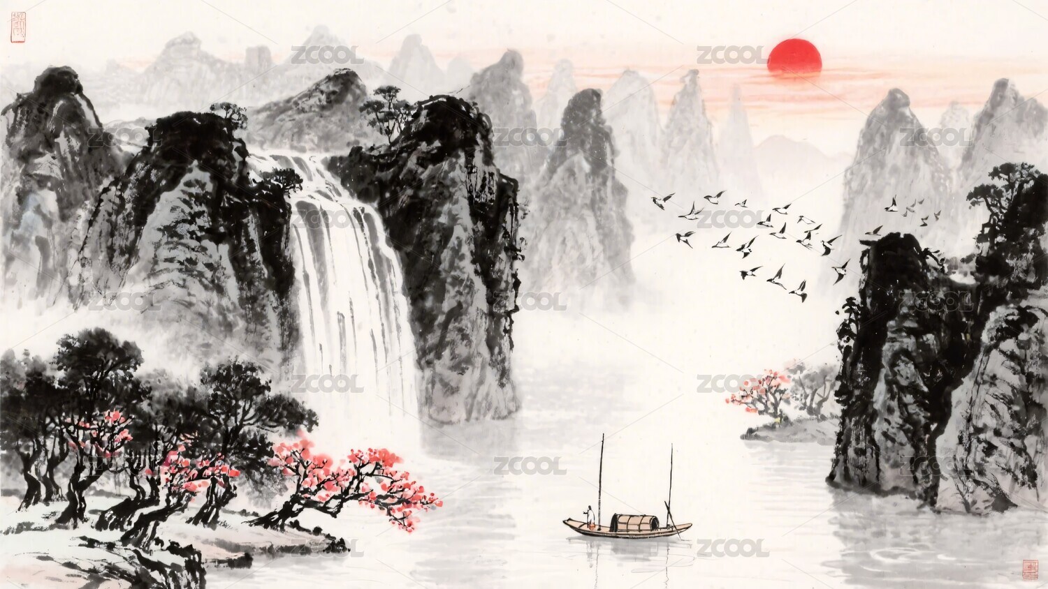 水墨山水花鸟