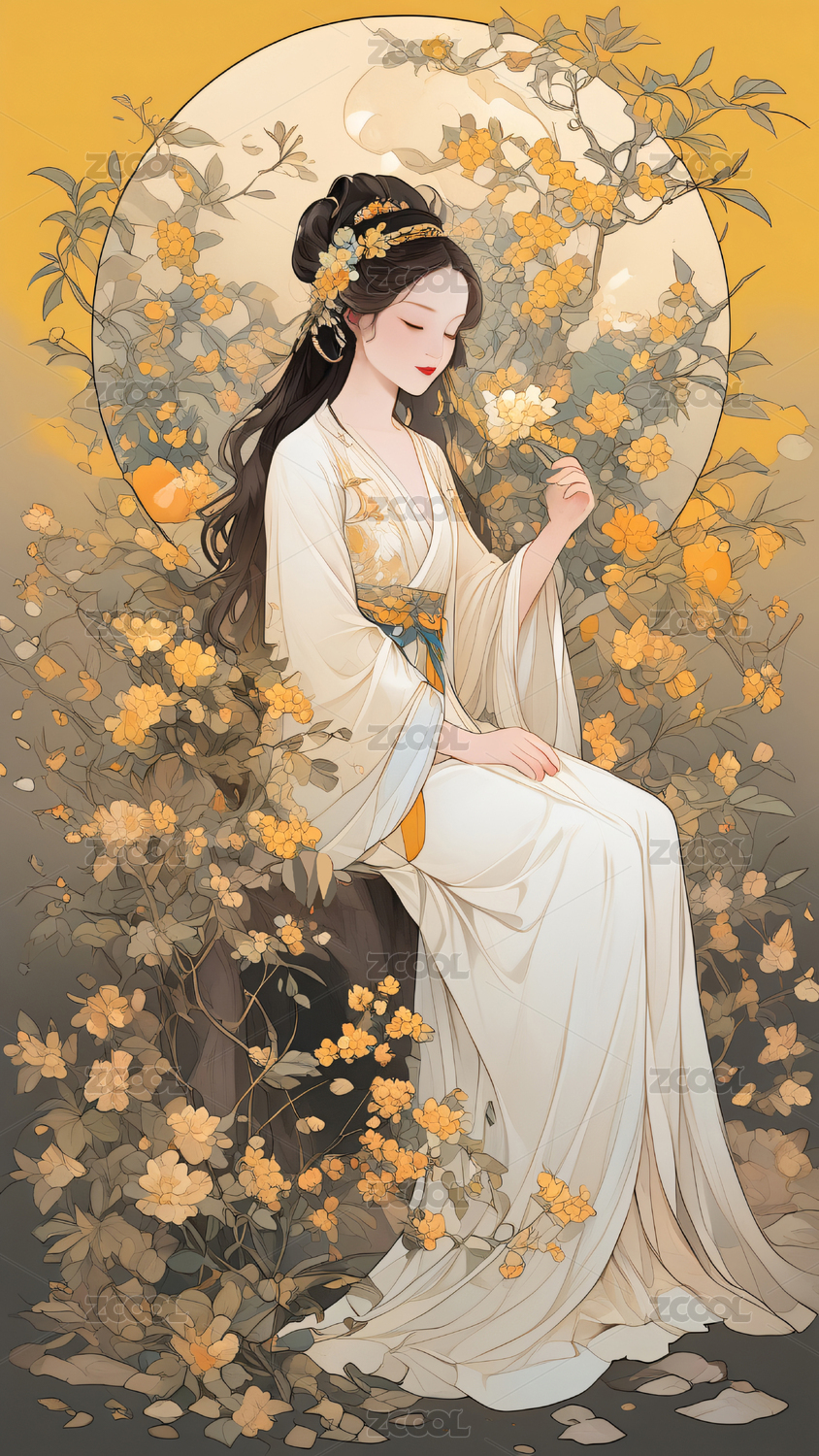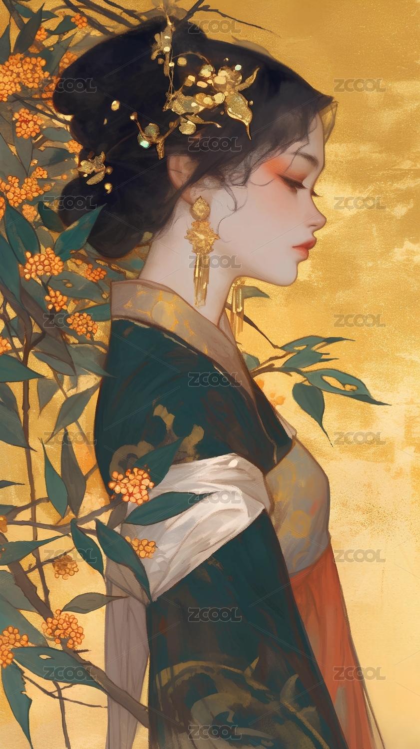 插画,清新,自然,植物,唯美,意境,花卉,国风,桂花,诗意