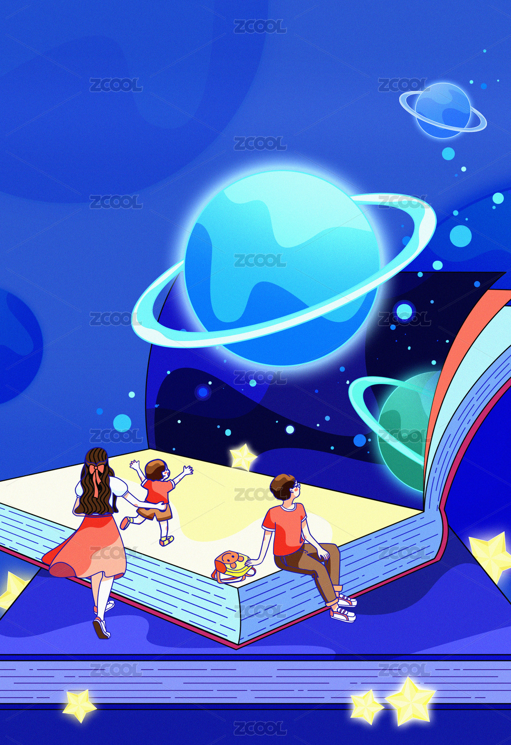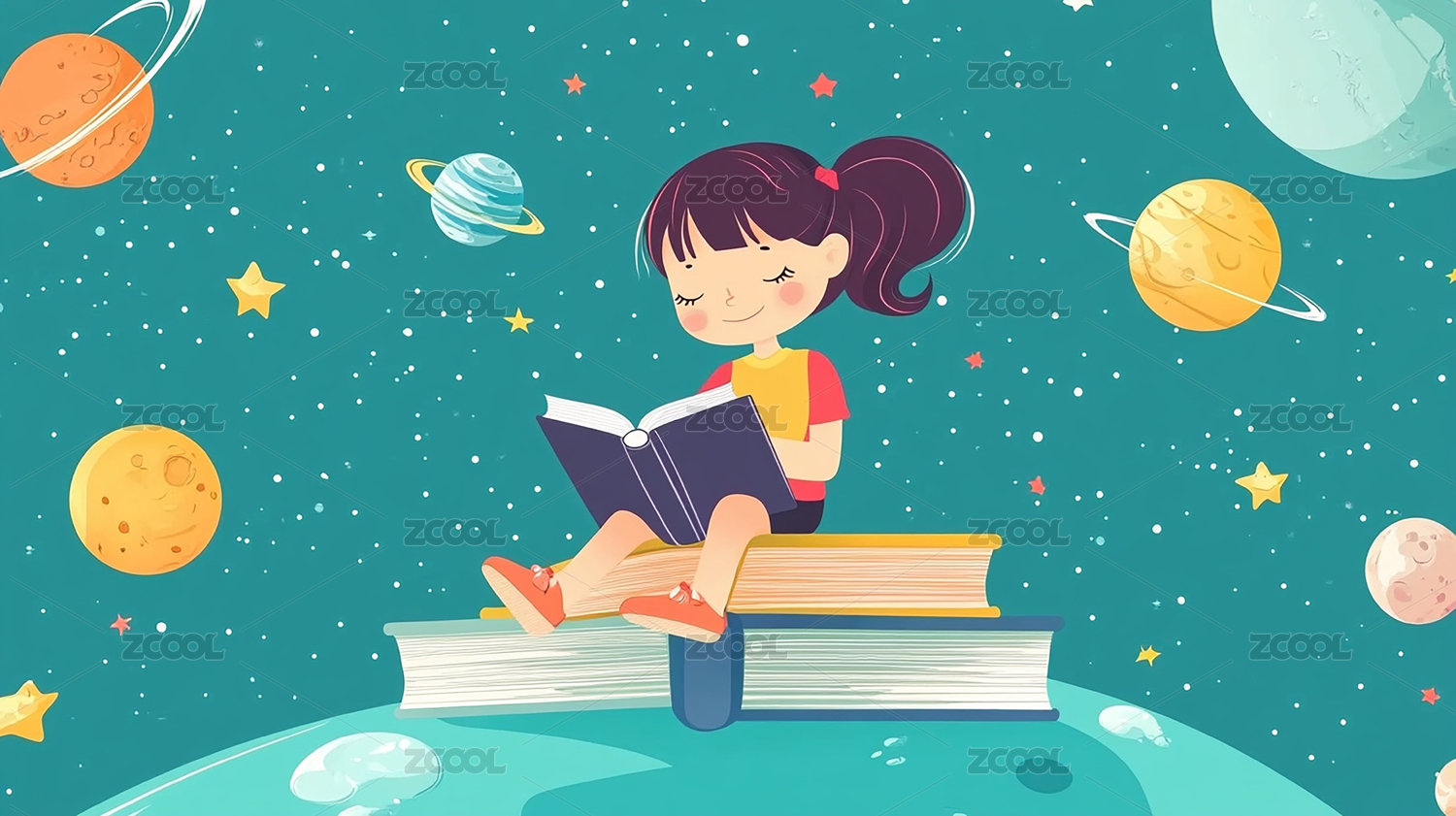 读书日宇航员梦想女孩在书籍的宇宙中旅行