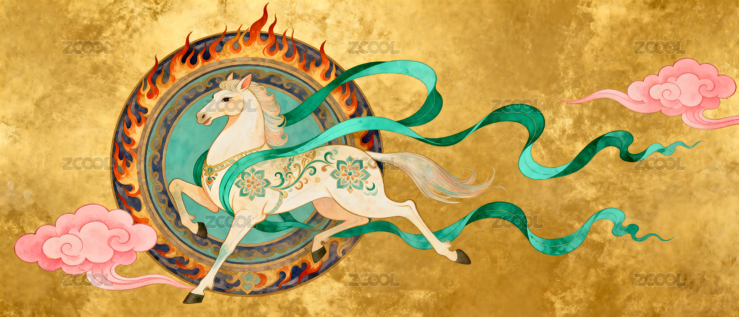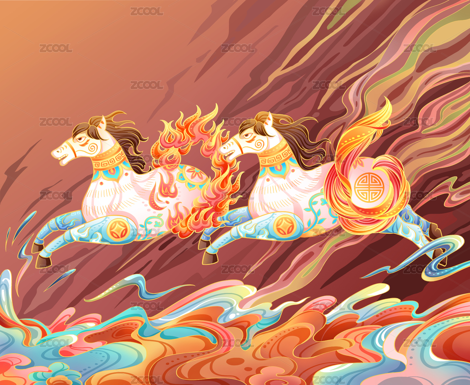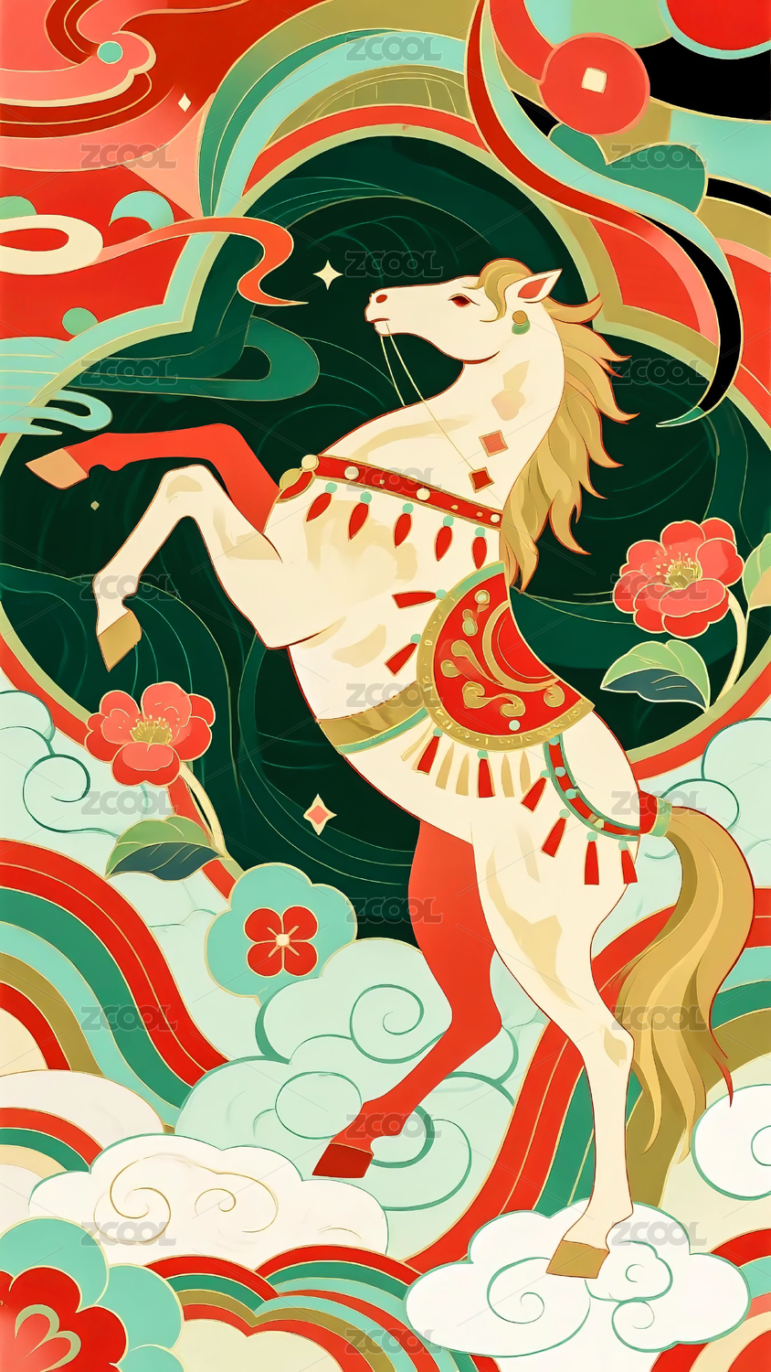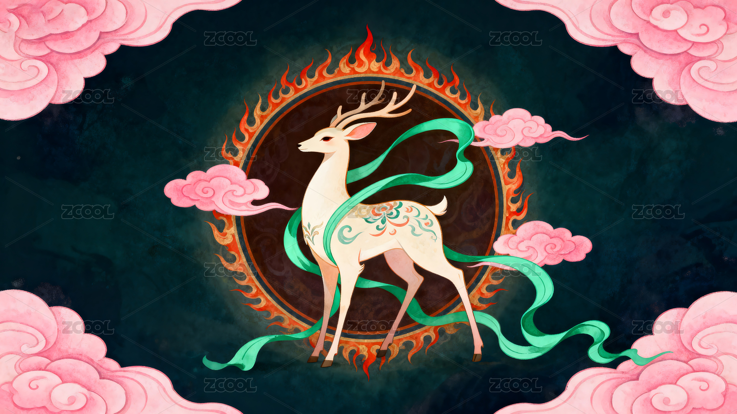 国潮敦煌白鹿夫诸神兽矢量中国风插画