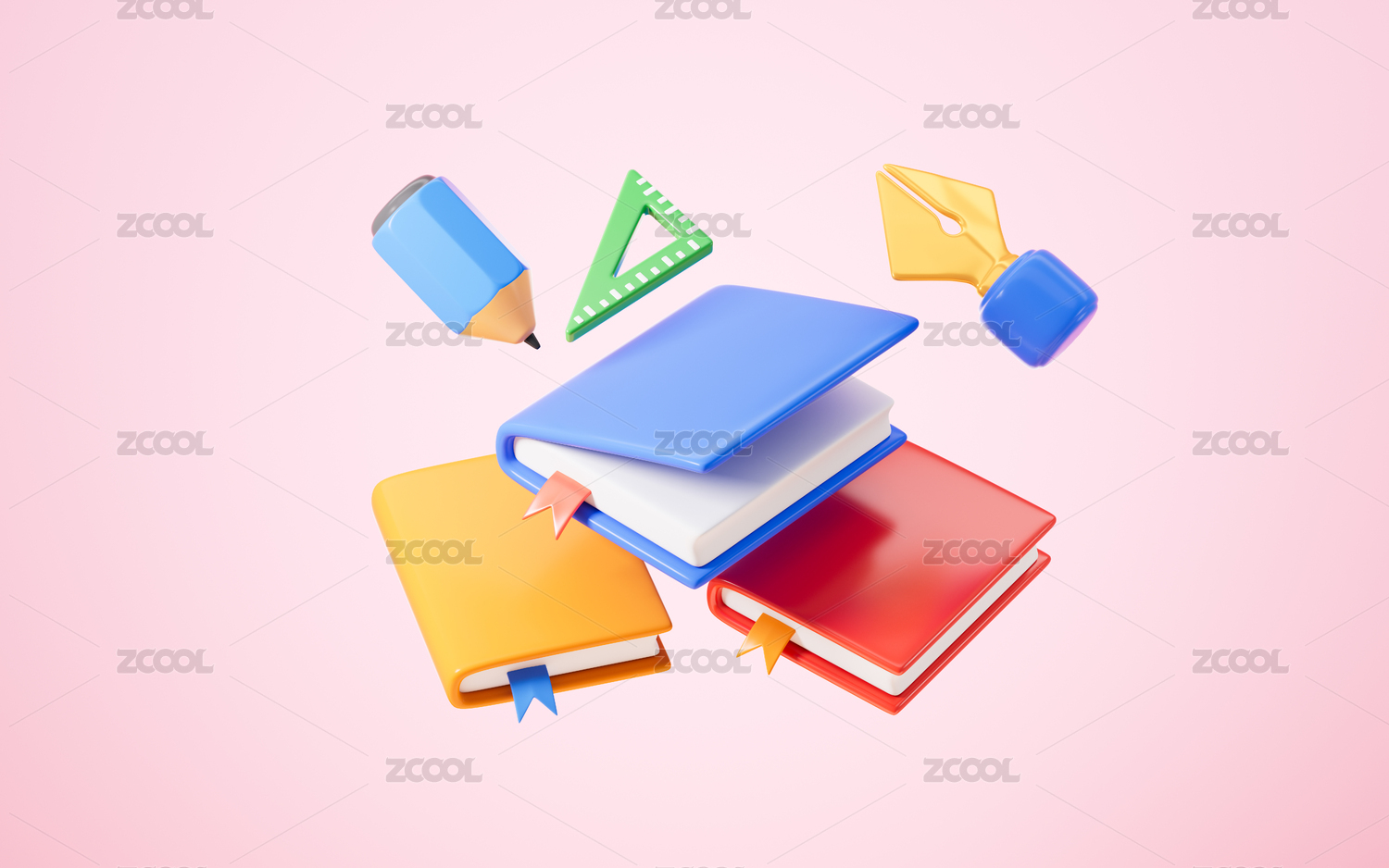 3D,插画,学习,学校,教育,知识,研究,写作,卡通,日记