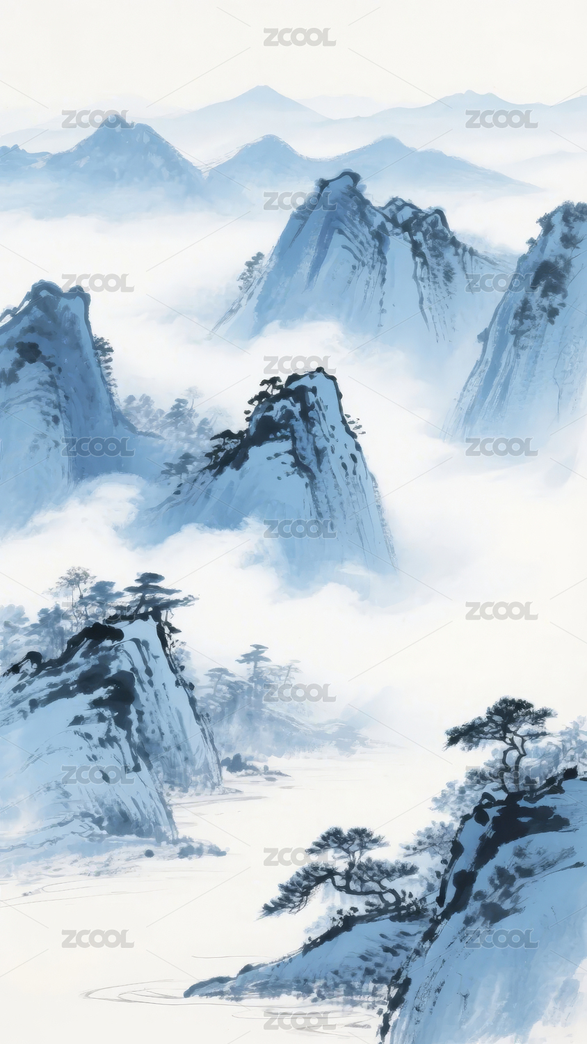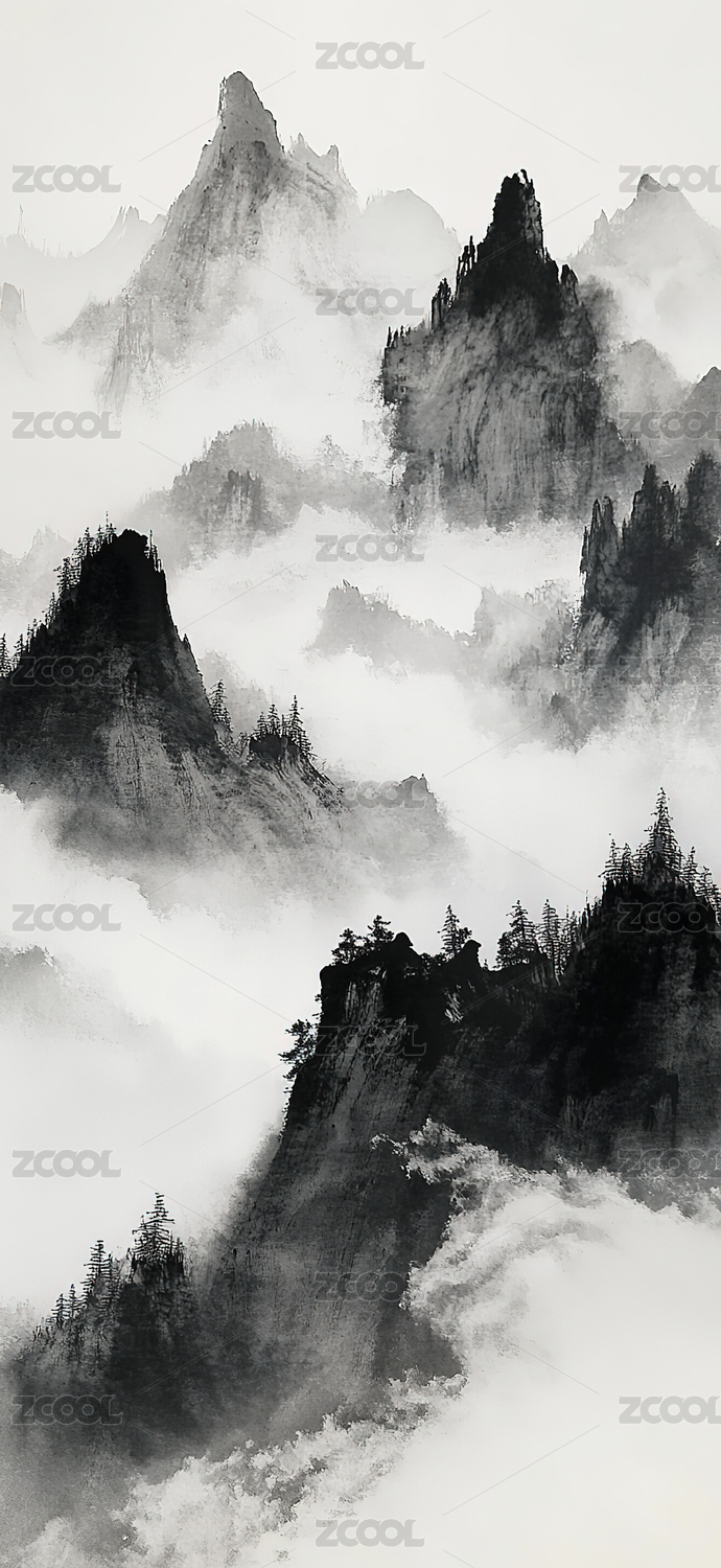 水墨江南山水画 新中式水墨山水 新中式山 水意境山水