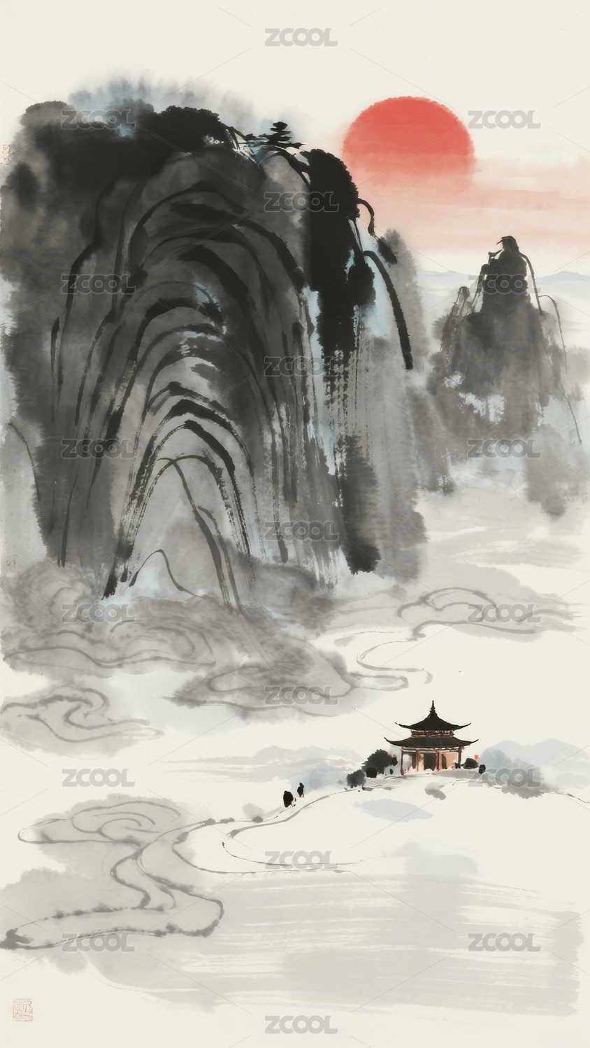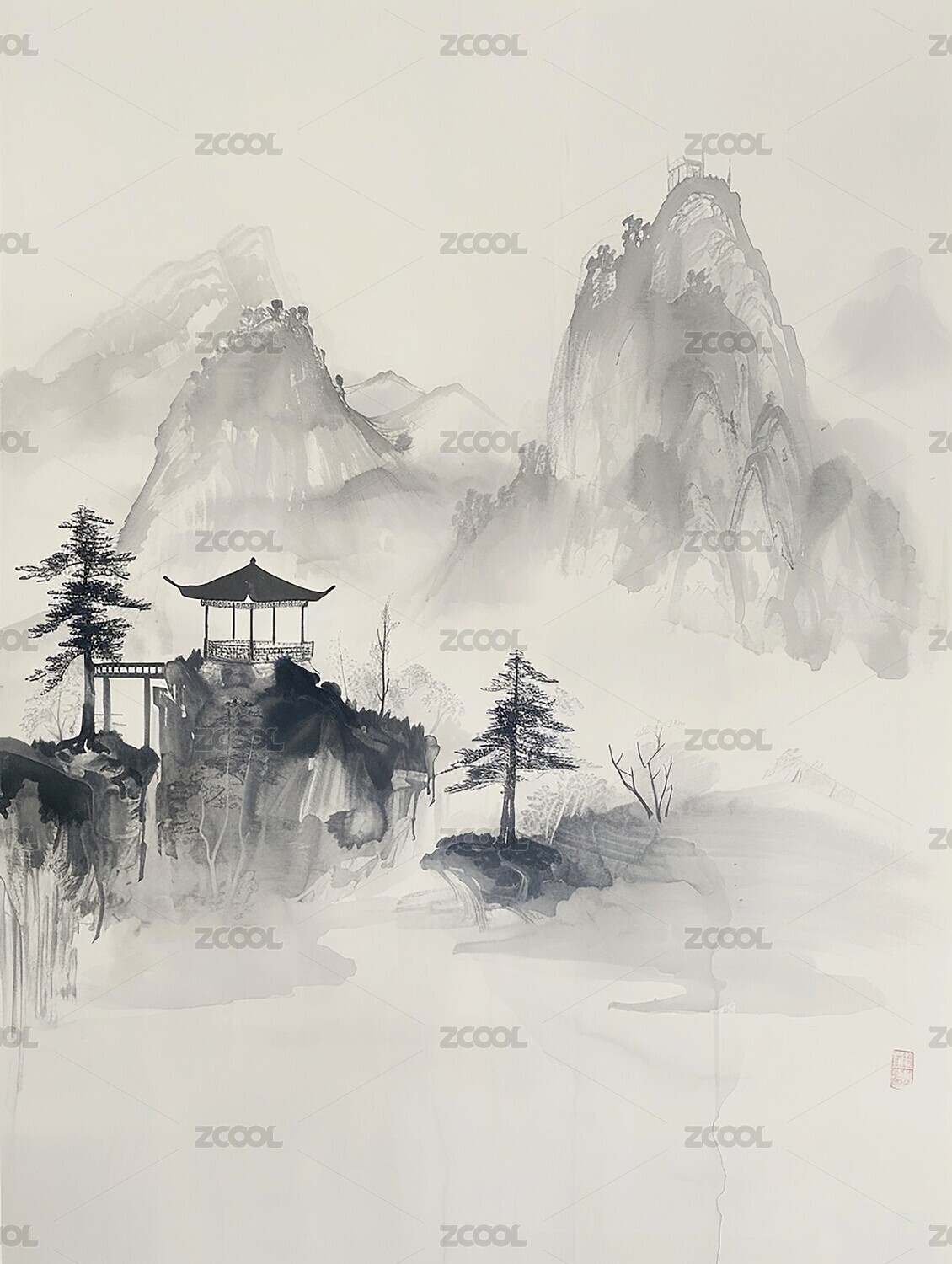 水墨江南山水画 新中式水墨山水 新中式山 水意境山水