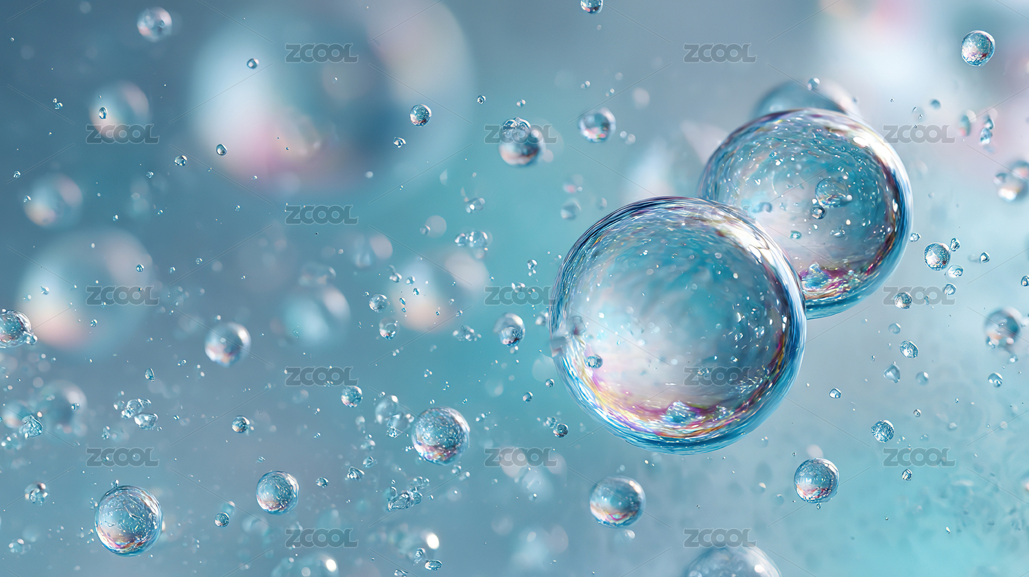 蓝色,透明,气泡,液体,水滴,圆润,饱满,清透,光滑,精华