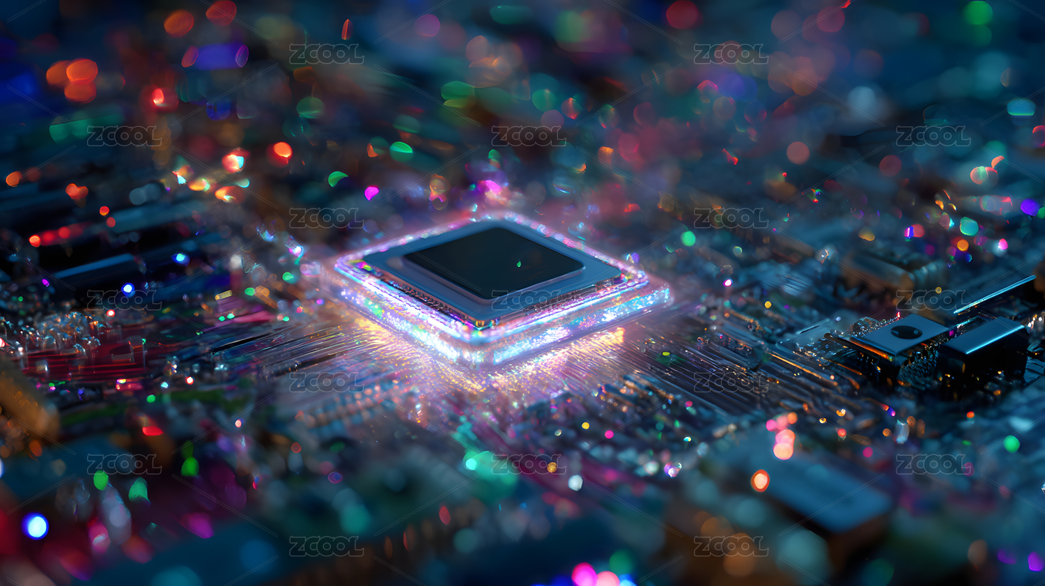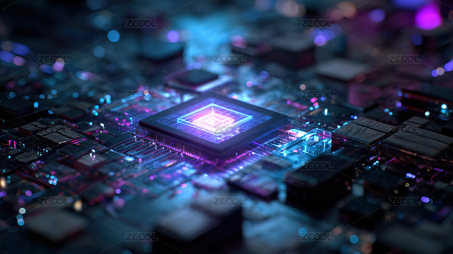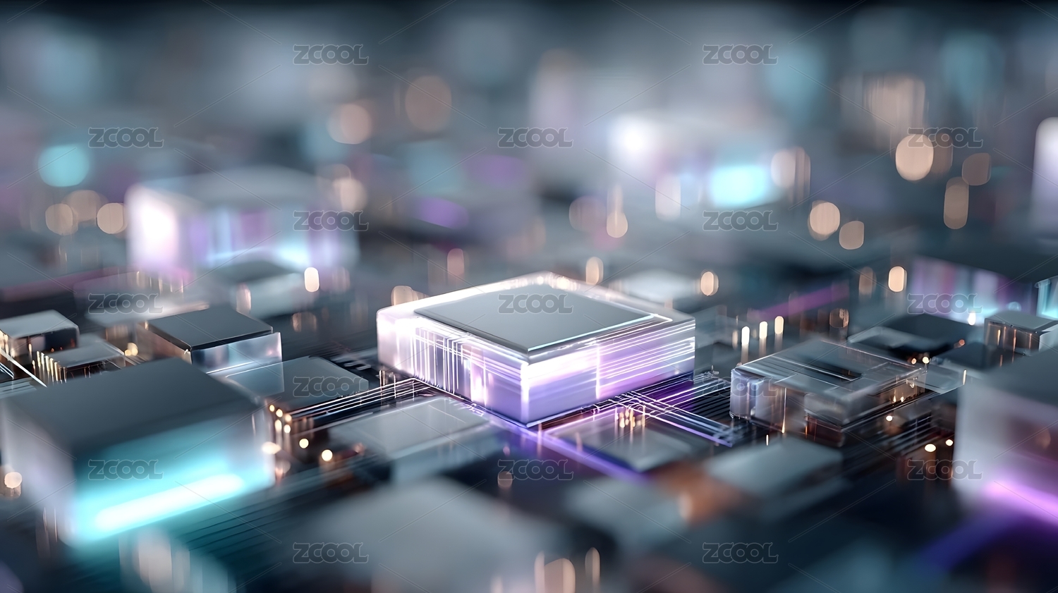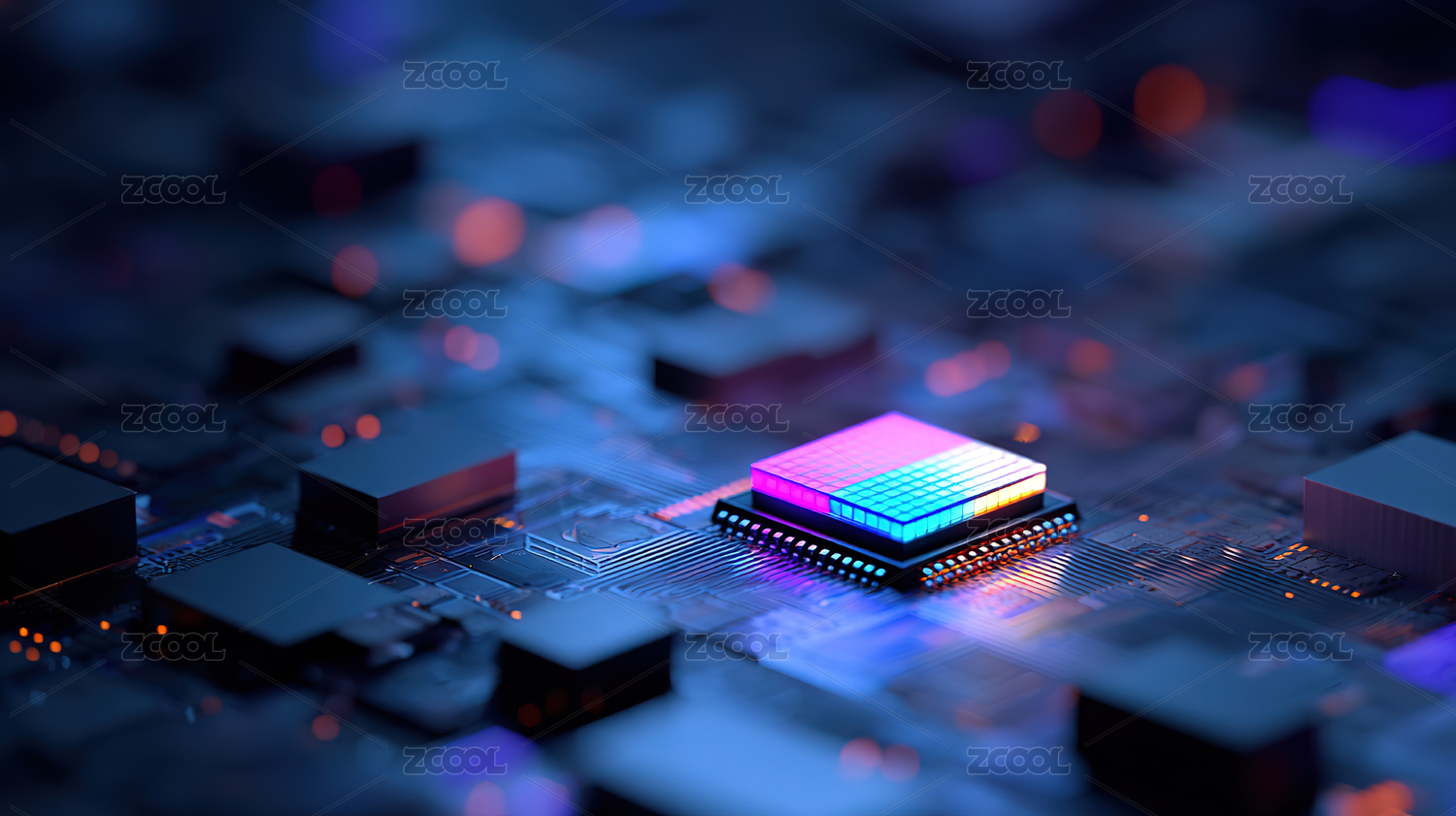 电子,芯片,科技,技术,3D,立体,晶片,核心,棱角,霓虹