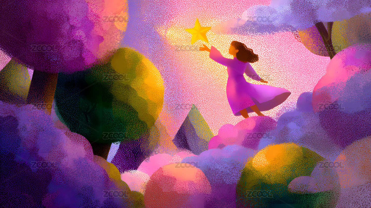 女人和梦幻的星星插画