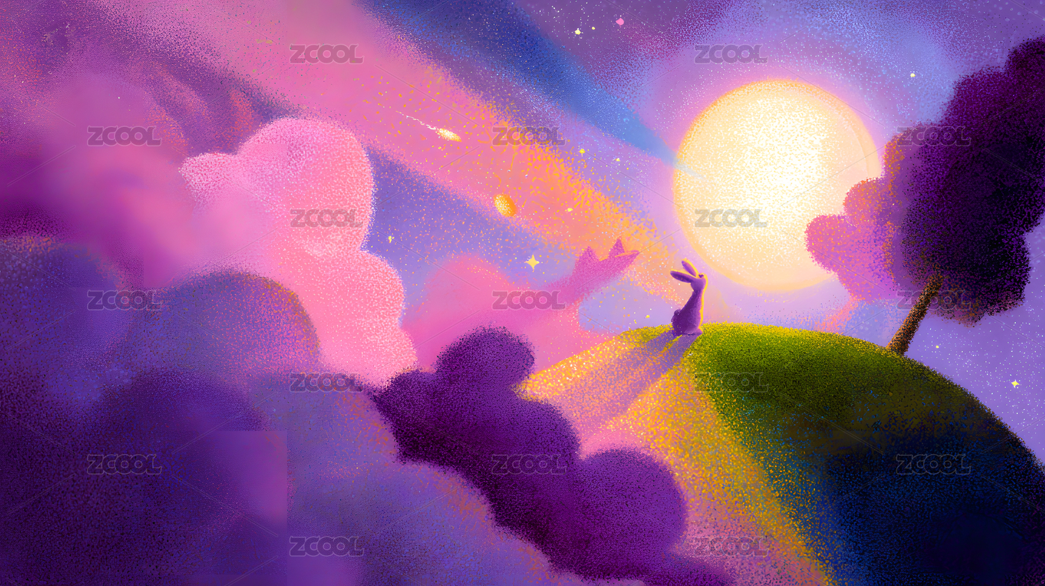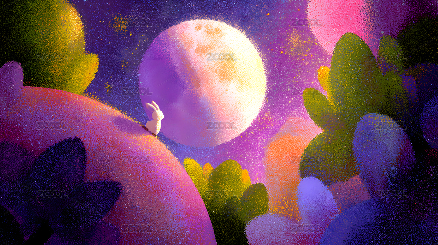 中秋圆月和兔子插画