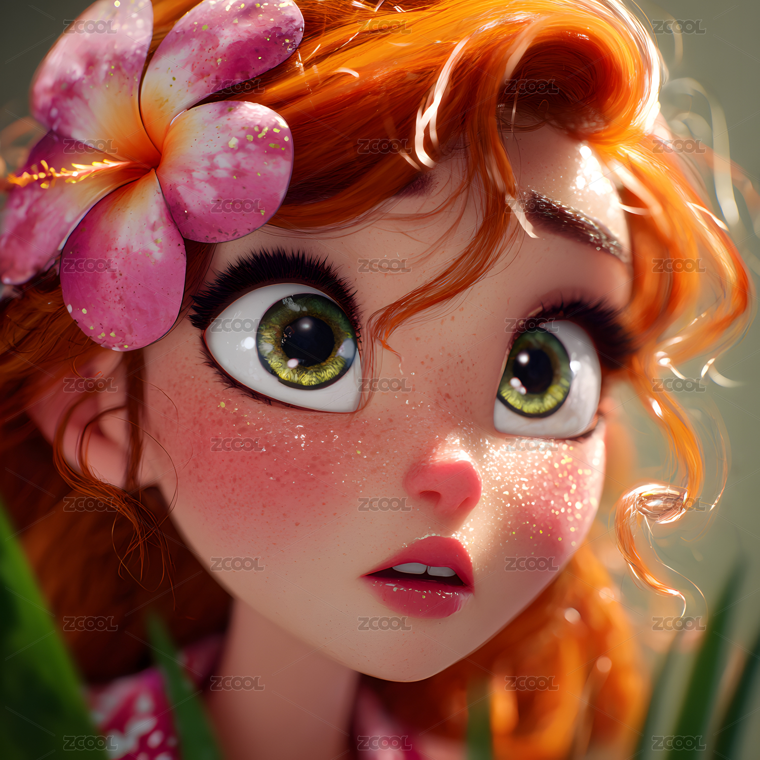 鲜花,花朵,女孩,人物,女人,3D,立体,公主,可爱,表情