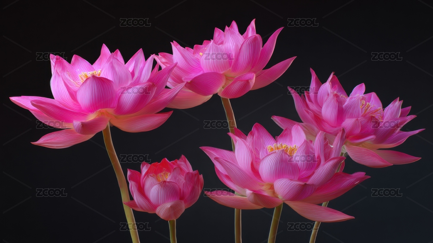 粉色荷花在黑暗背景下的绽放