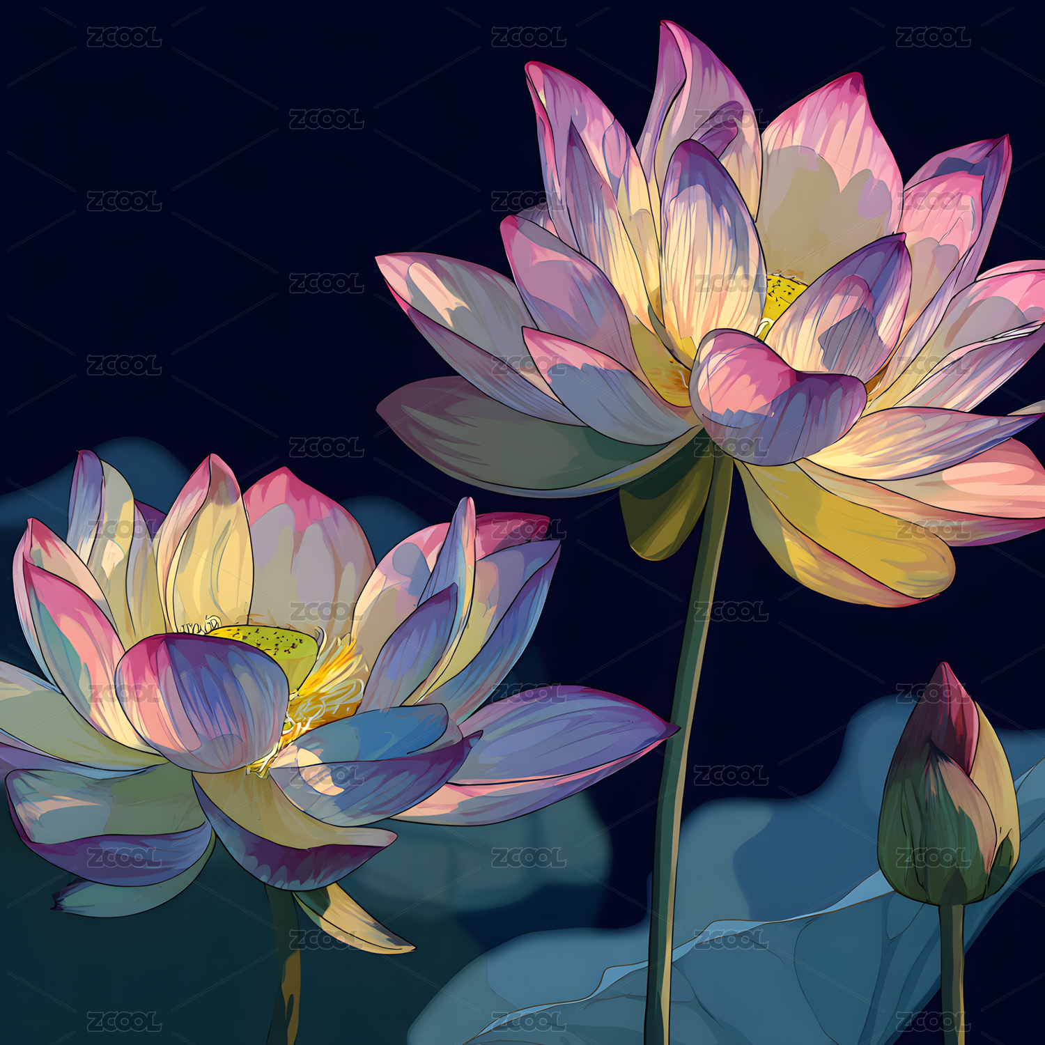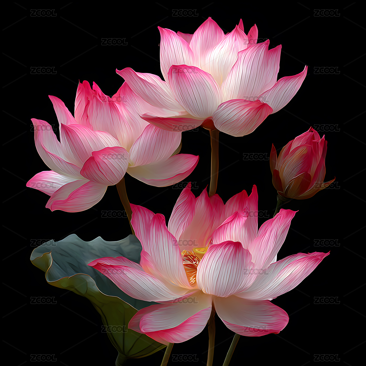 盛开,荷花,莲花,花朵,花瓣,鲜花,叶子,粉色,渐变,花苞