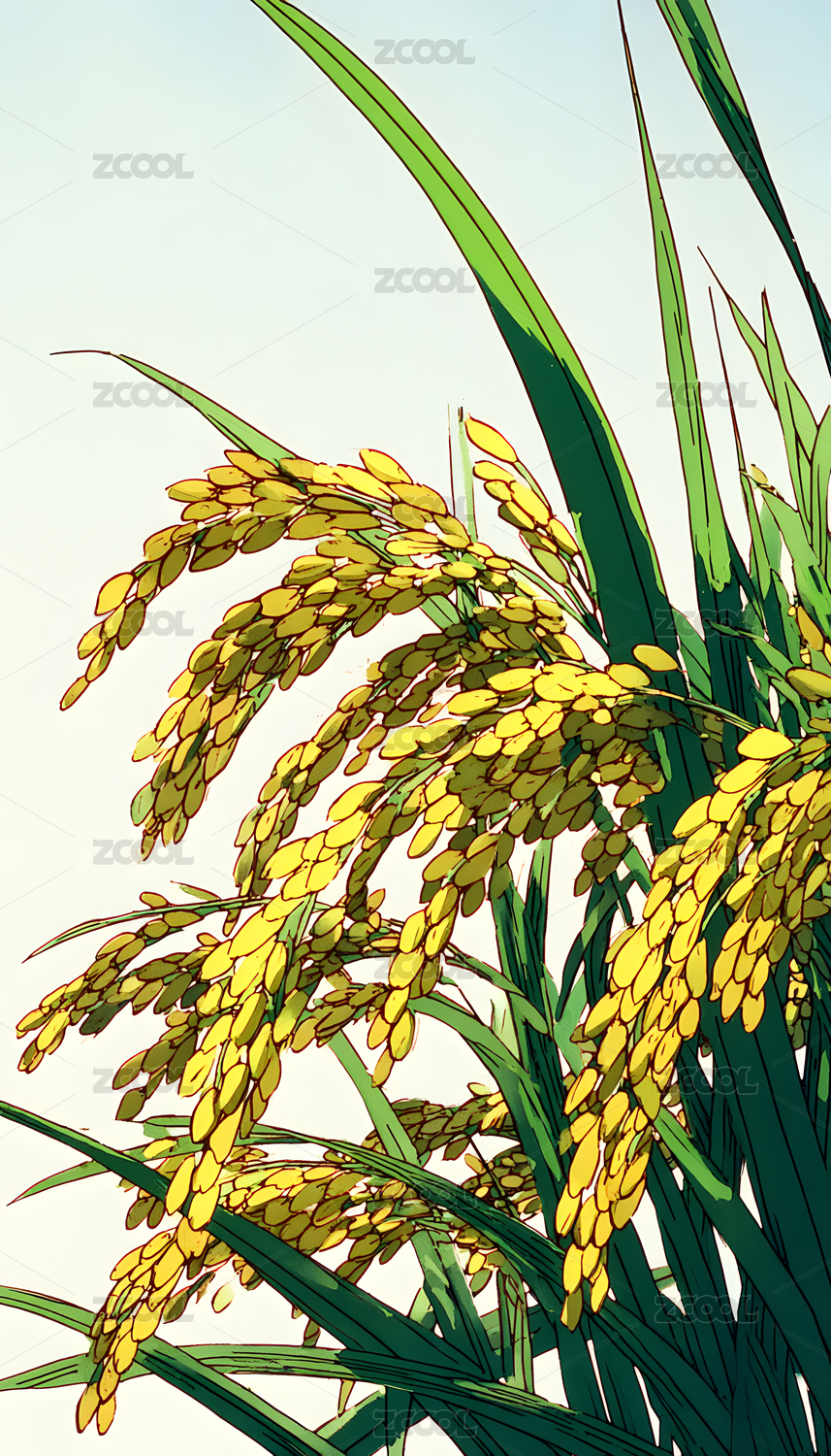 麦穗,食物,粮食,成熟,叶子,插画,平面,扁平,蓝天,白云