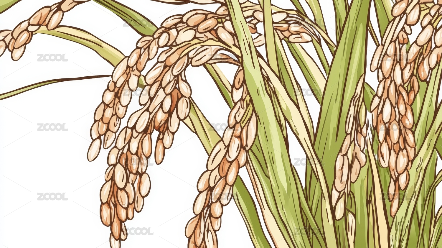 麦穗,食物,粮食,成熟,叶子,插画,平面,扁平,蓝天,白云