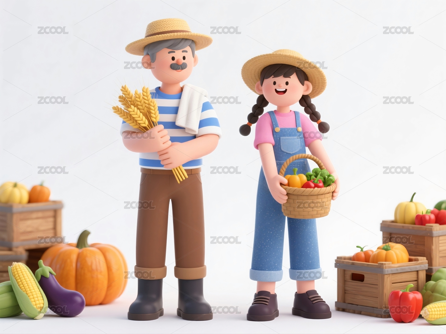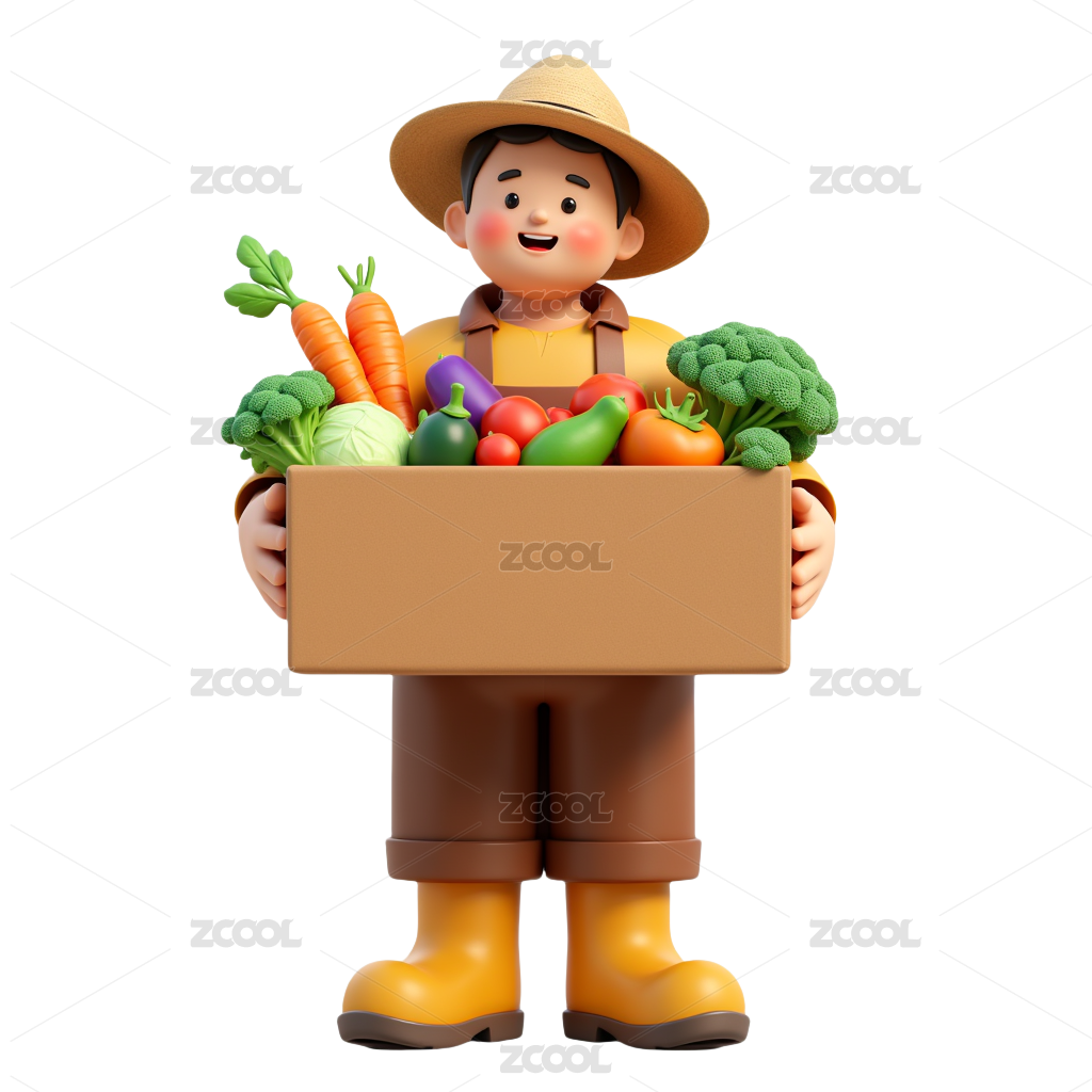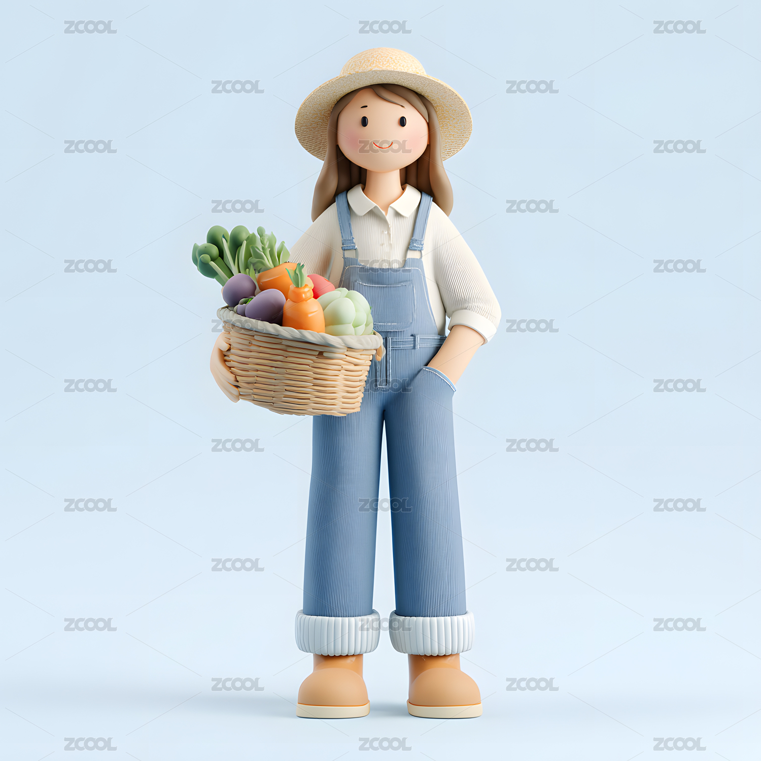 人物,蔬菜,筐,3D,立体,卡通,形象,背带裤,帽子,可爱