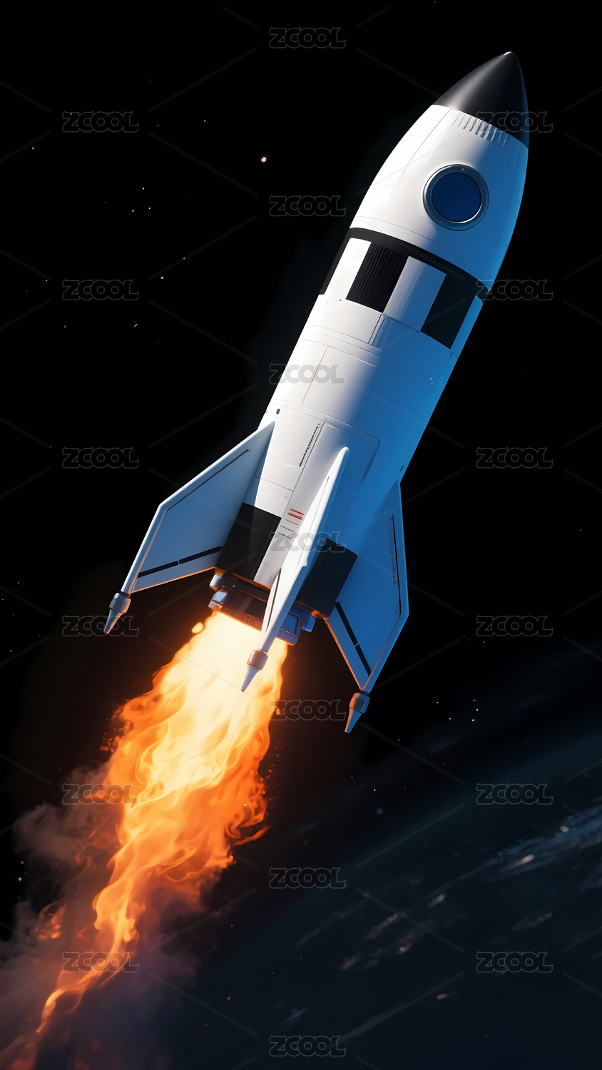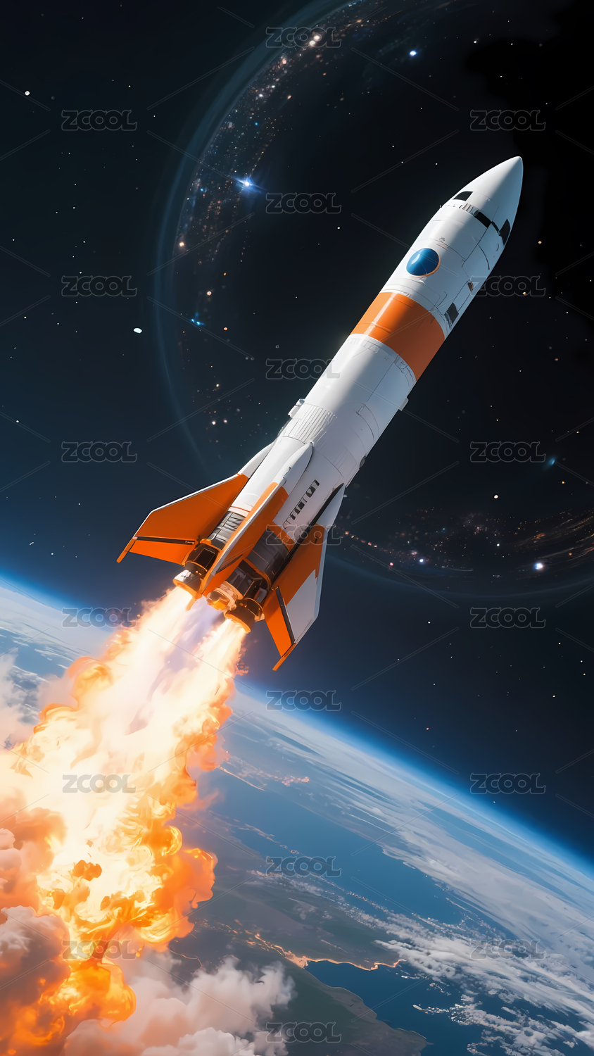 对比,白色,橙黄,夜空,星空,火箭,发射,火焰,云层,喷射