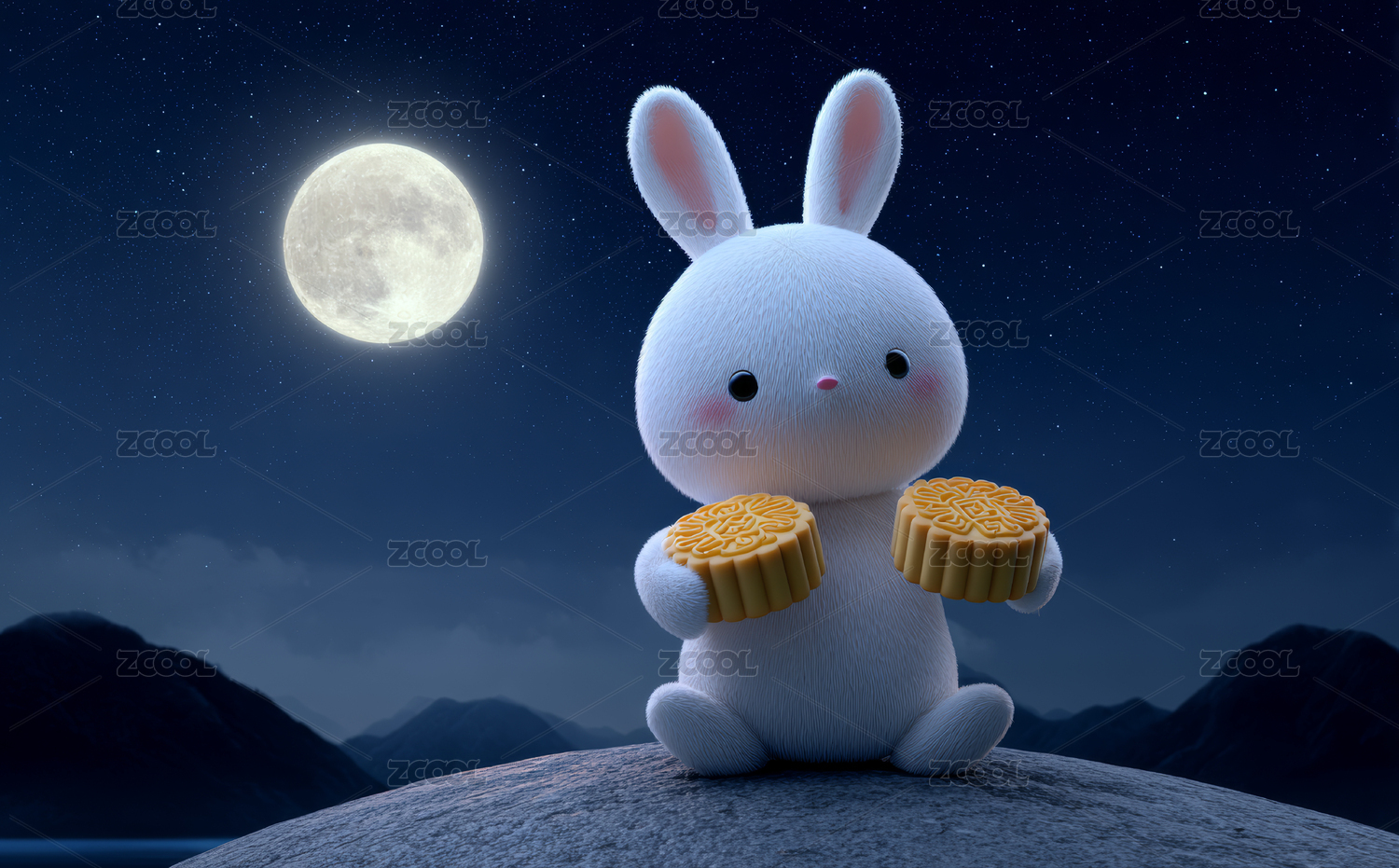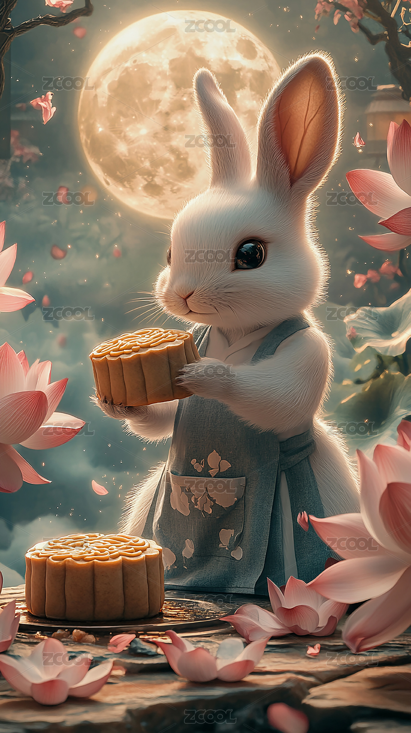 兔子,月亮,夜晚,静谧,自然,植物,动物,幻想,夜景,中秋
