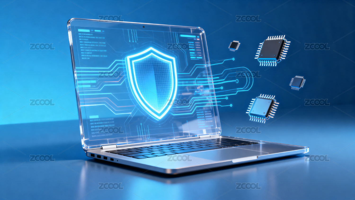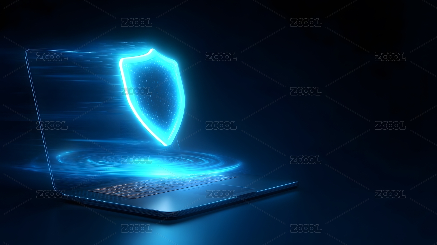 科技感笔记本电脑展示安全防护系统