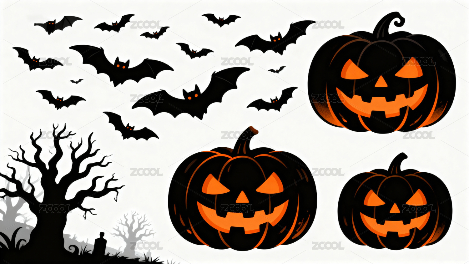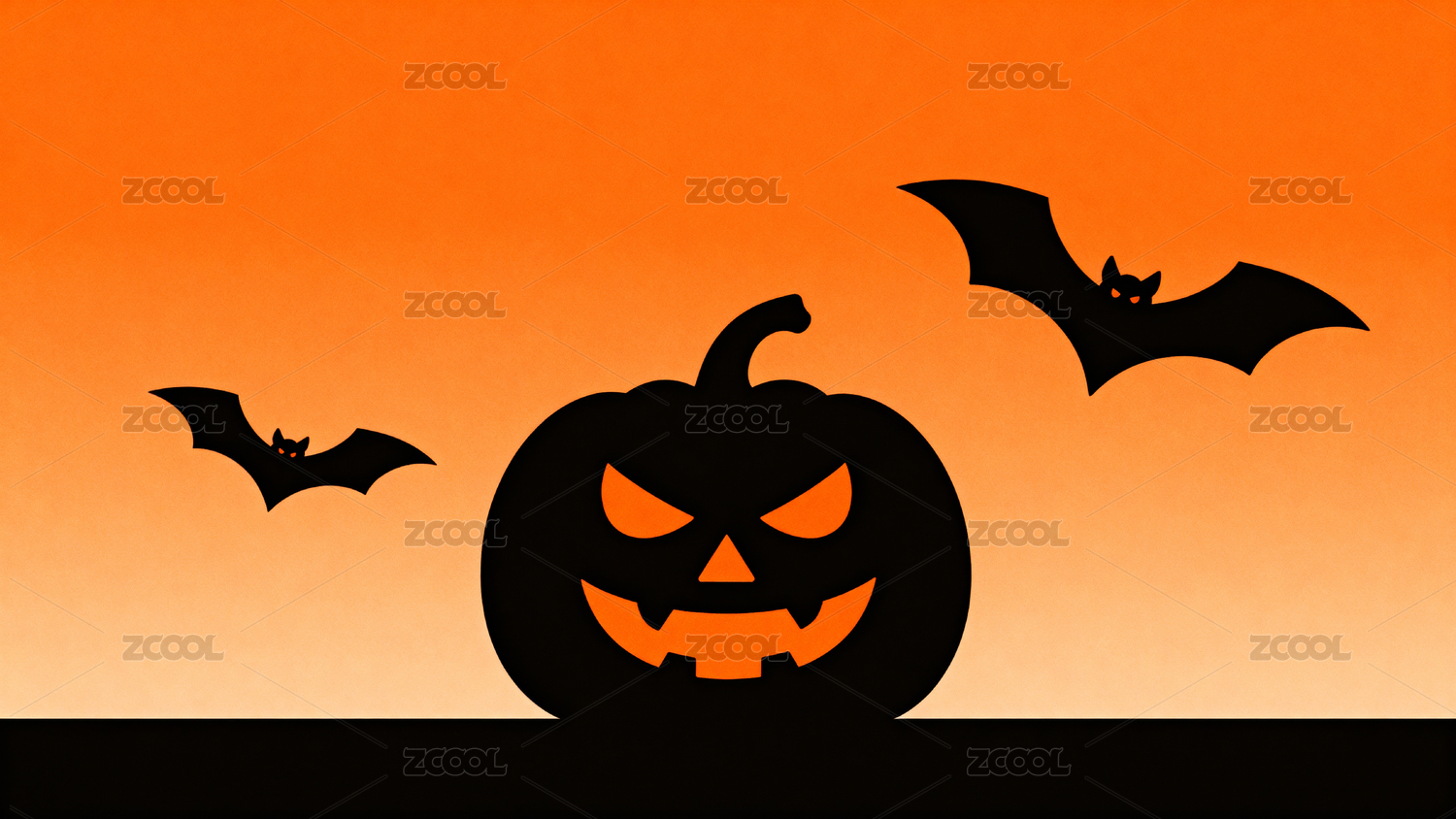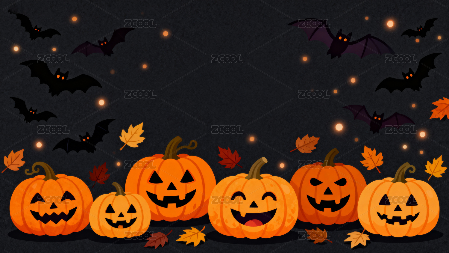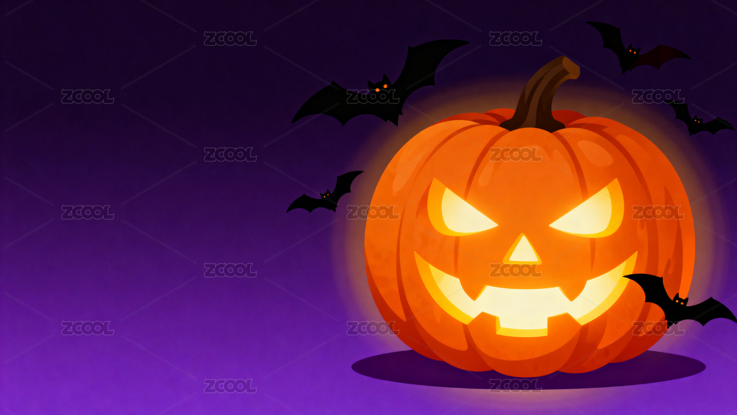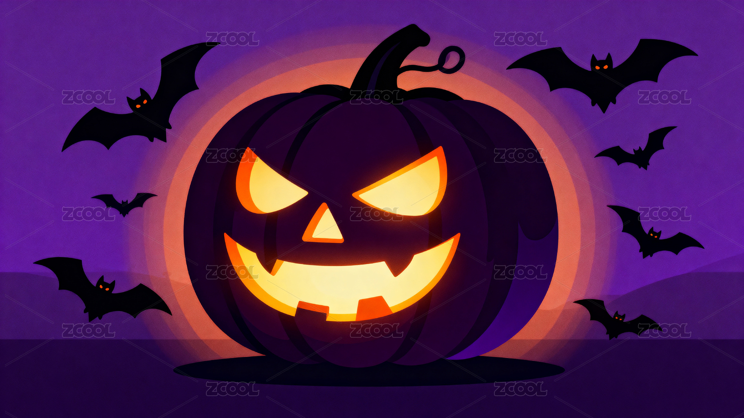 万圣节复古风格月下带着女巫帽的南瓜灯