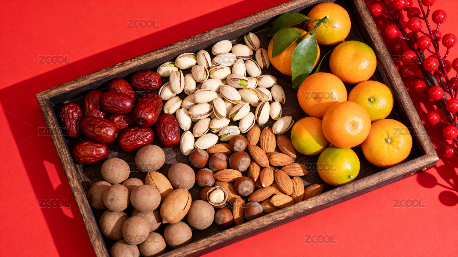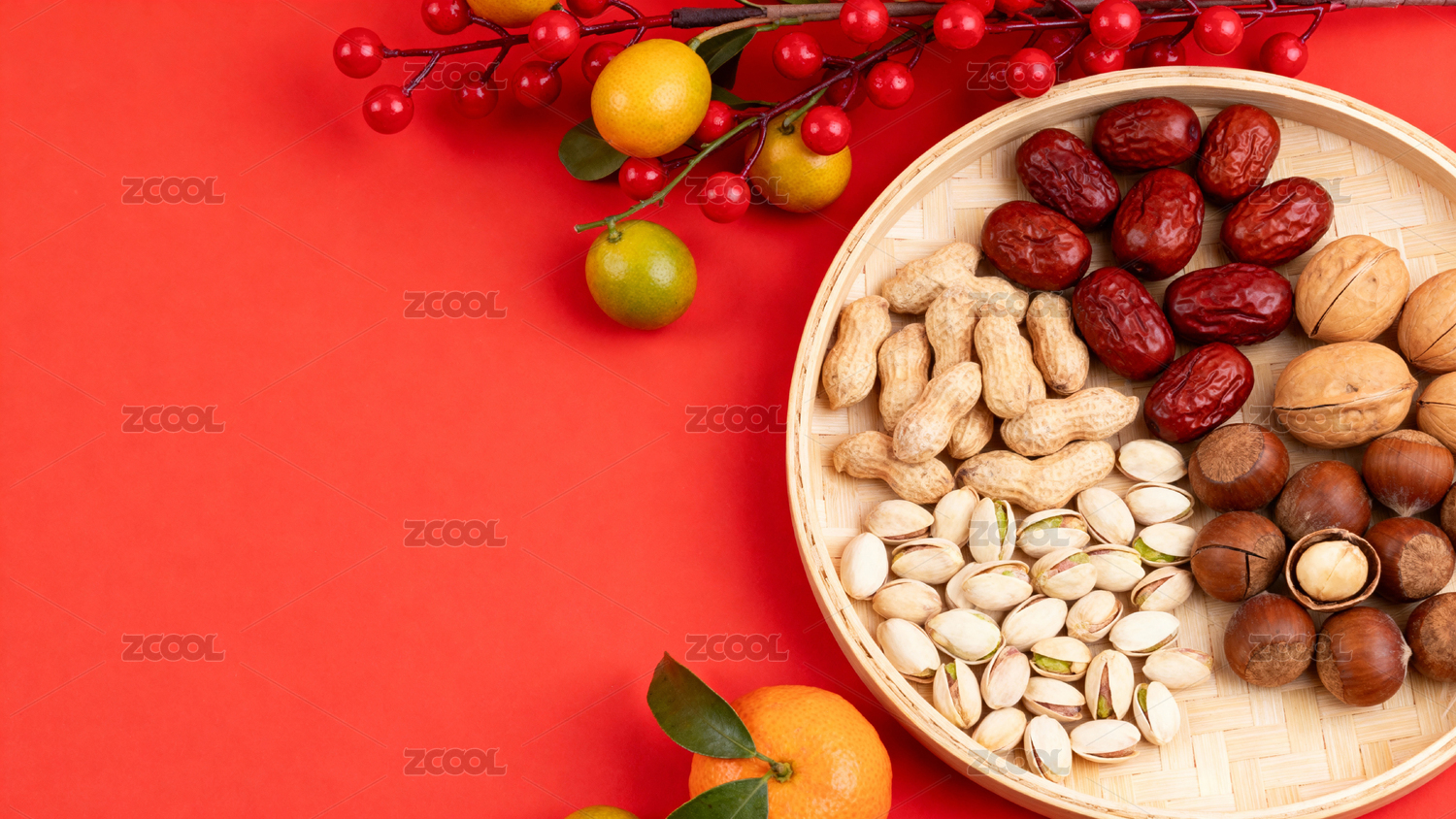 节日,背景,装饰,叶子,枝条,坚果,红枣,开心果,橘子,红色