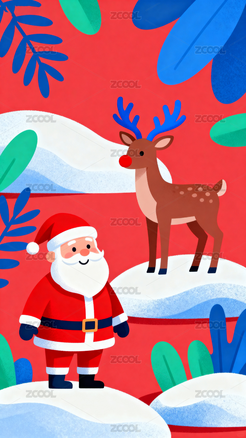 圣诞老人与驯鹿的节日祝福