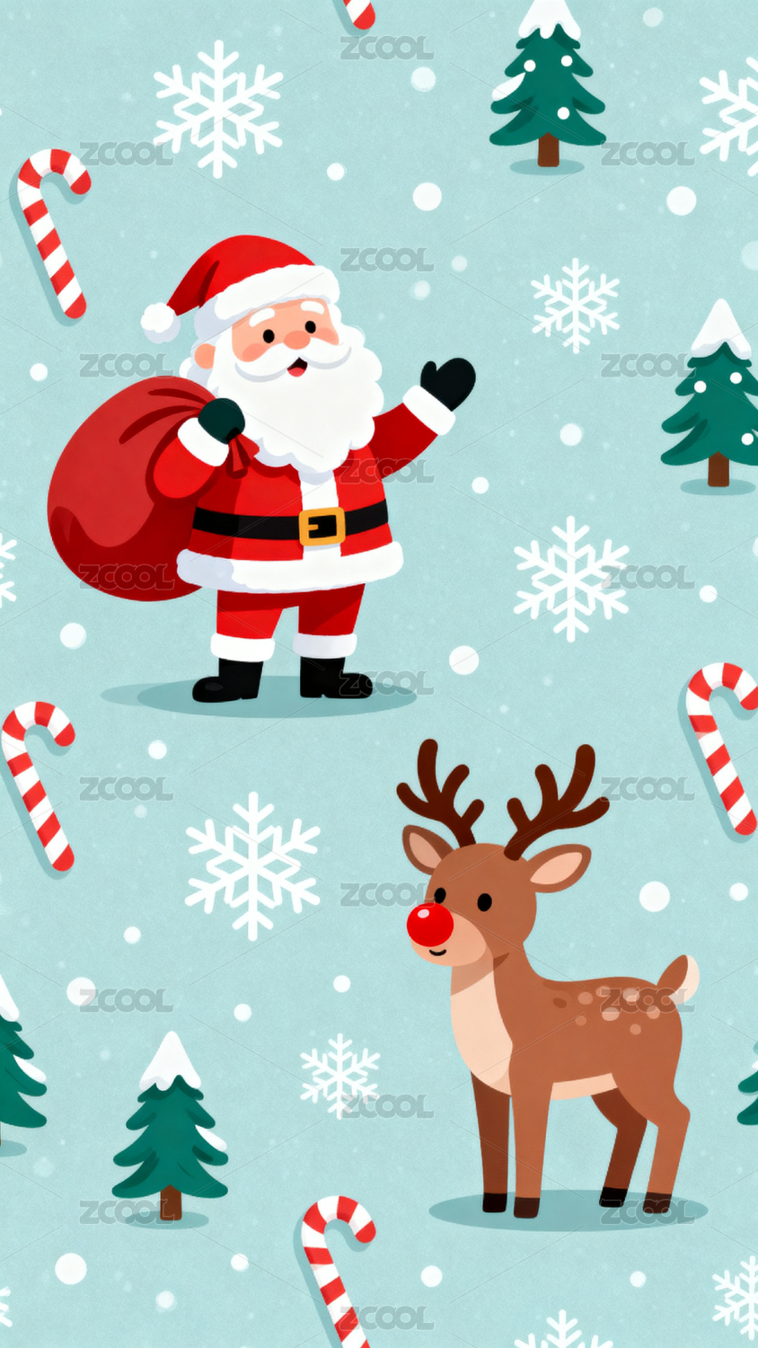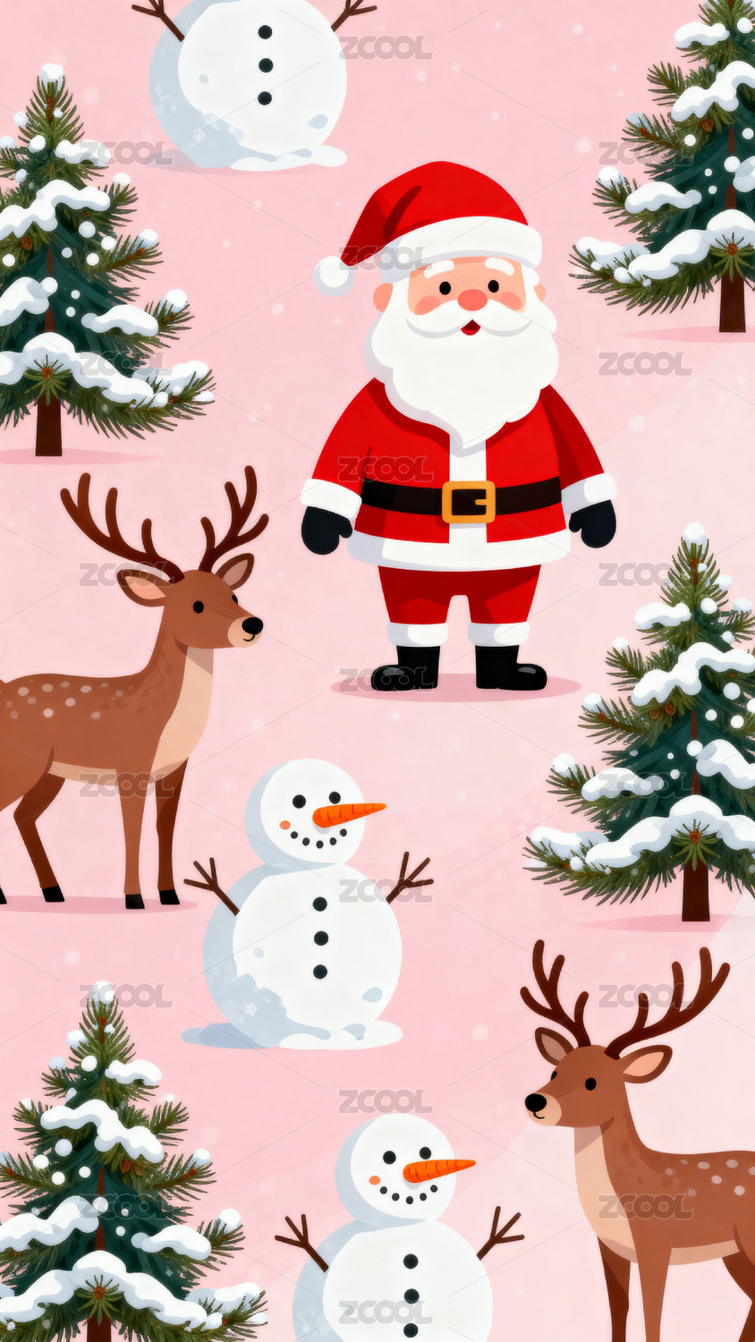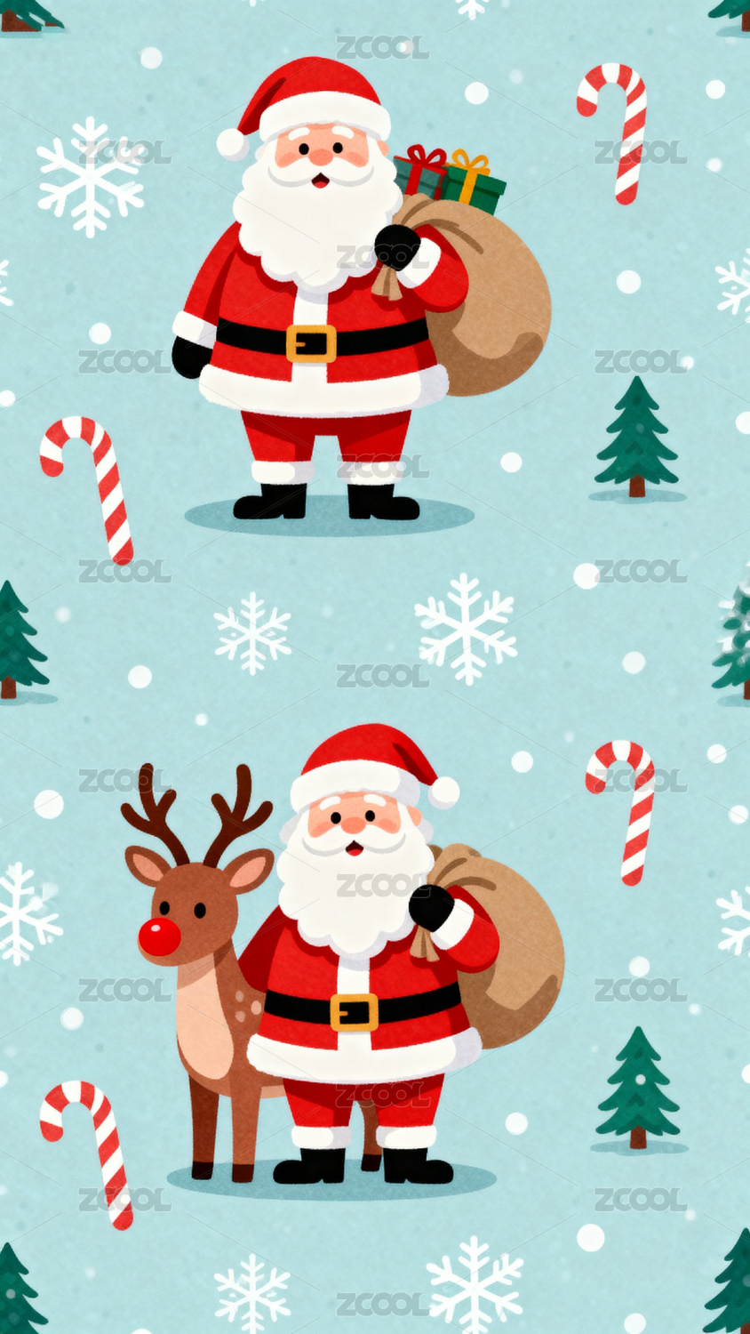 圣诞老人与驯鹿的冬日场景