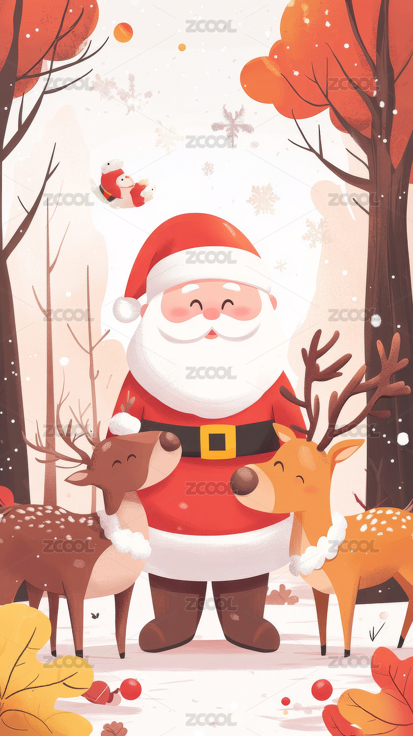 圣诞老人与鹿的森林场景