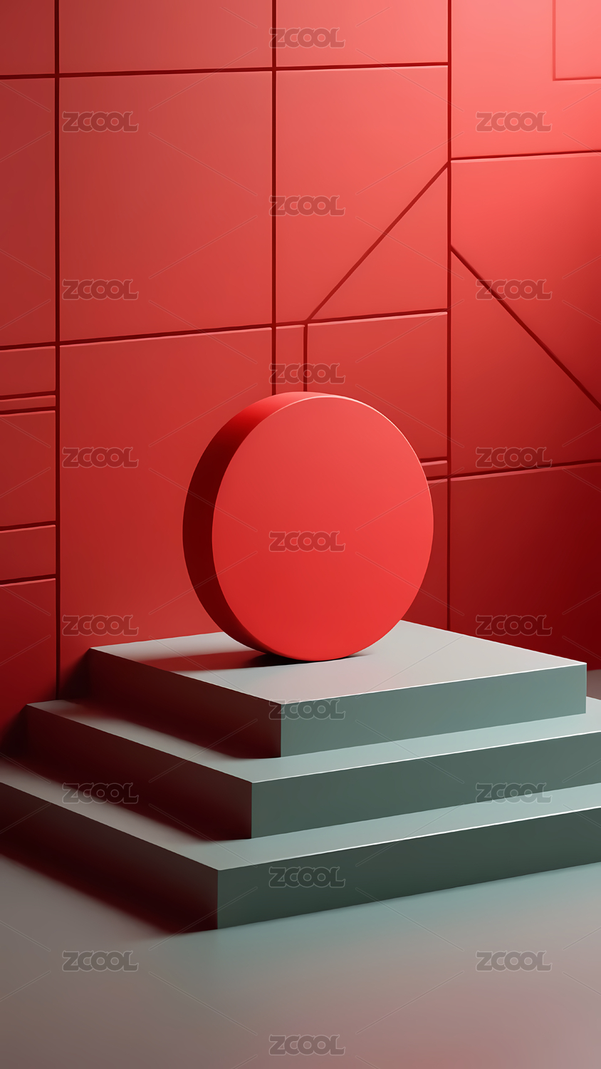 抽象,设计,白色,红色,简洁,灰色,几何,墙面,立方体,地面