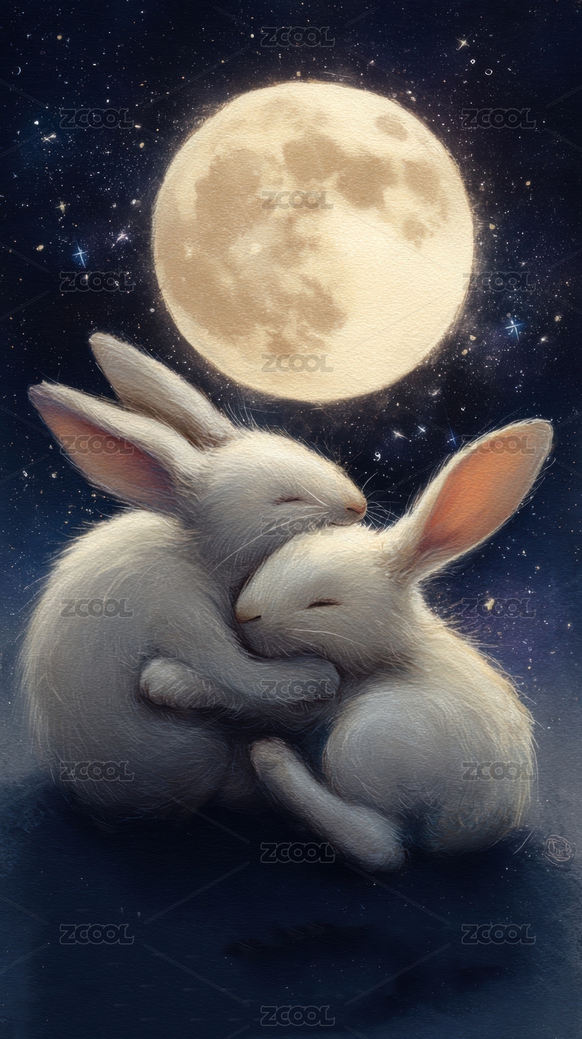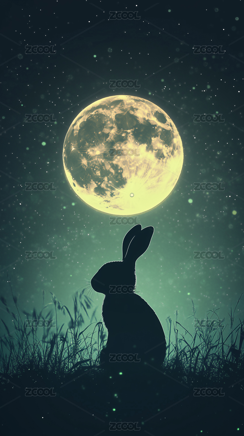 中秋节,月亮,兔子,自然,宁静,夜景,静谧,动物,远景,星空