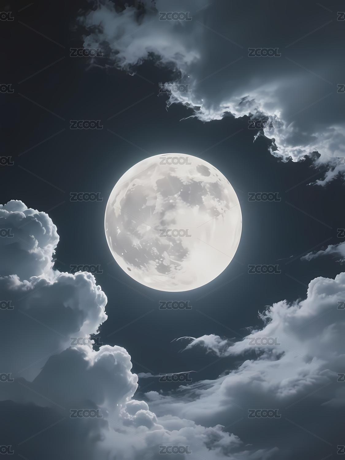 明亮,深蓝,宁静,自然,月亮,星星,夜空,云彩,浪漫,美丽