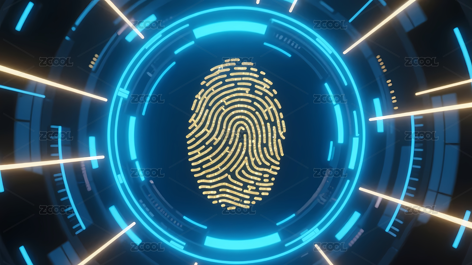 背景,光影,蓝色,橙色,光点,未来,科技,指纹,走廊,中心