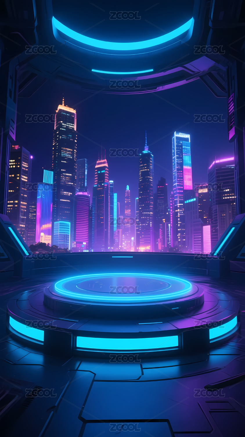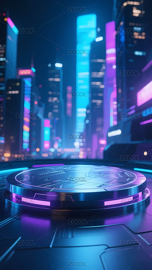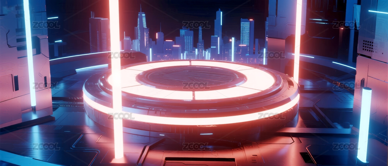 科幻城市夜景圆形平台