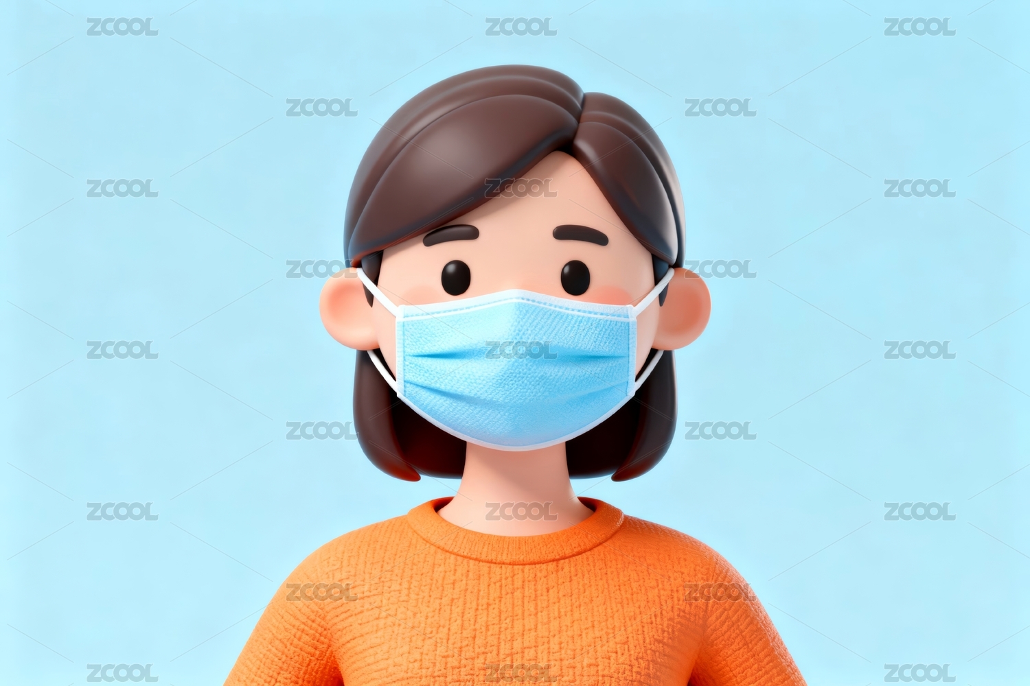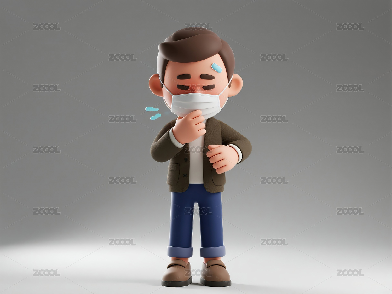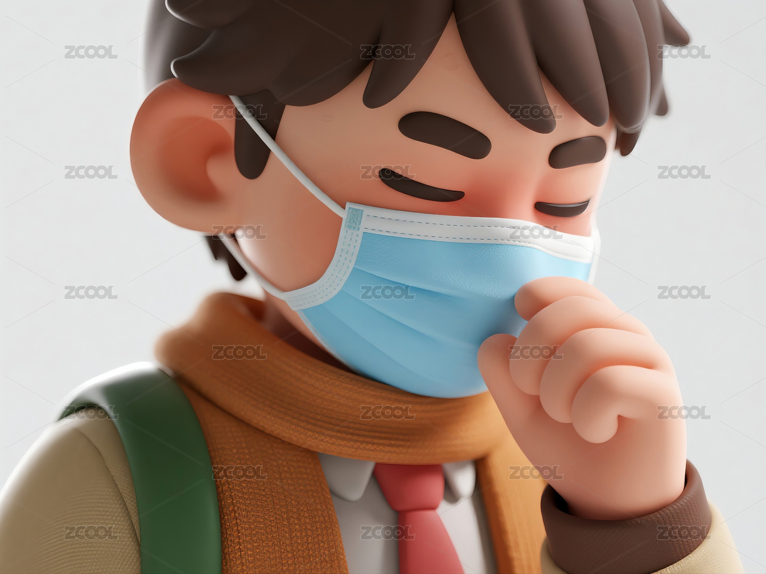 3D,三维,感冒,发烧,咳嗽,气管炎,口罩,男孩,男士