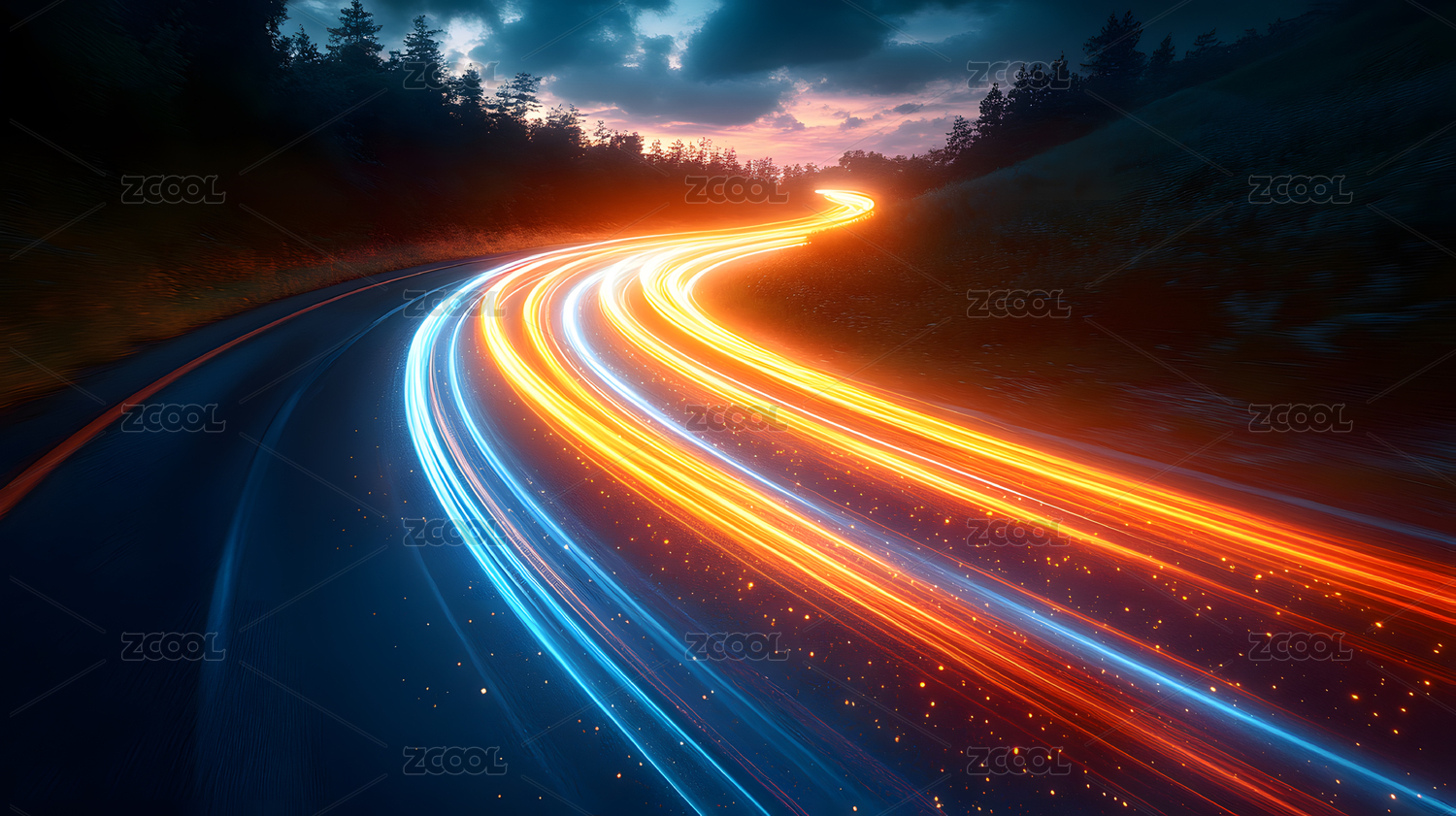 夜幕,发光,高速,公路,光影,轨迹,夜晚,光速线