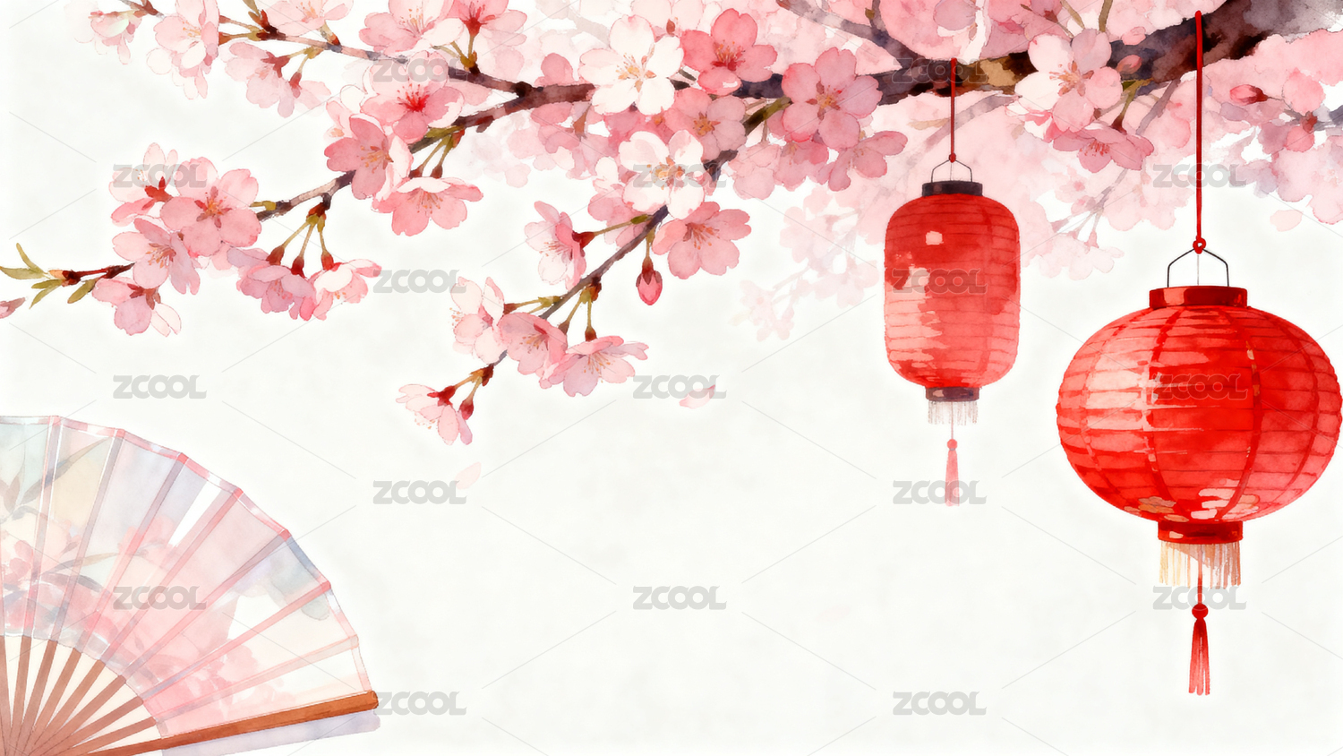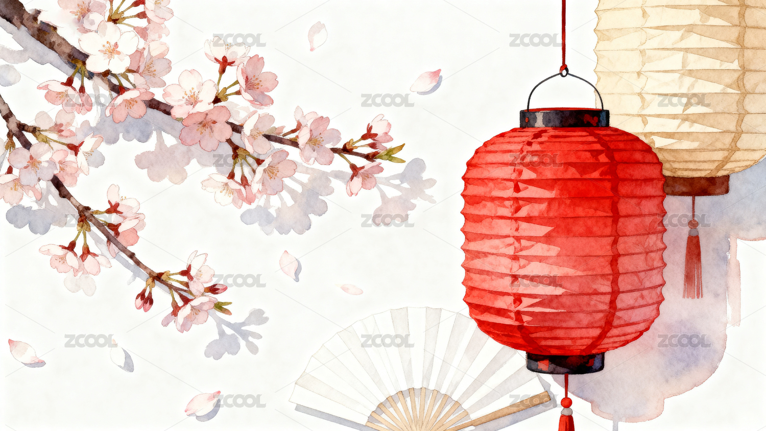 灯笼,装饰,传统,艺术,优雅,光影,细节,樱花,枝条,东方
