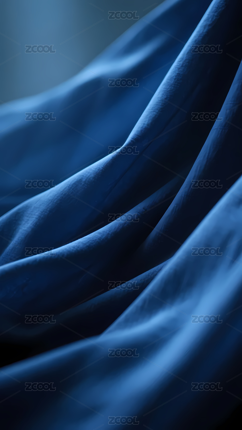 深蓝色丝绸的精致褶皱呈现流畅的质感