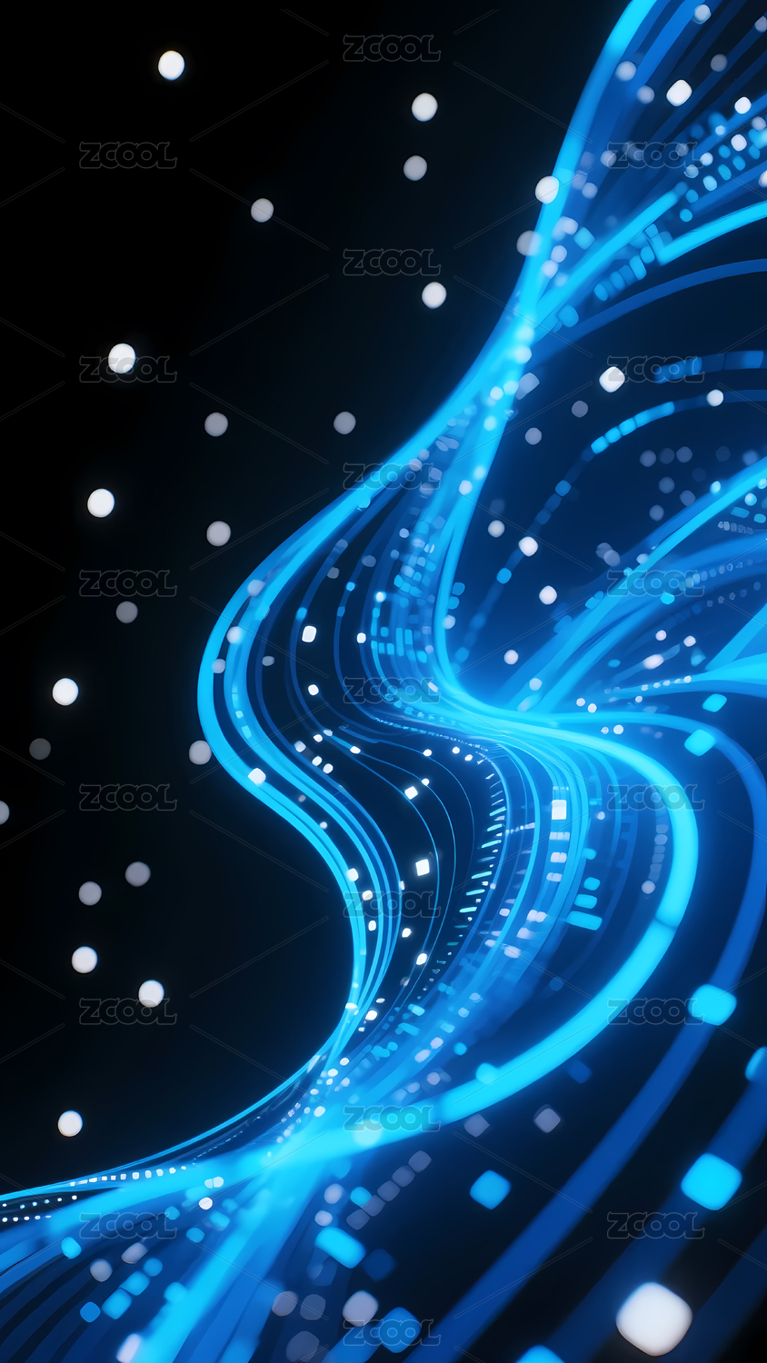 黑色背景下被照亮的蓝色光纤的特写镜头